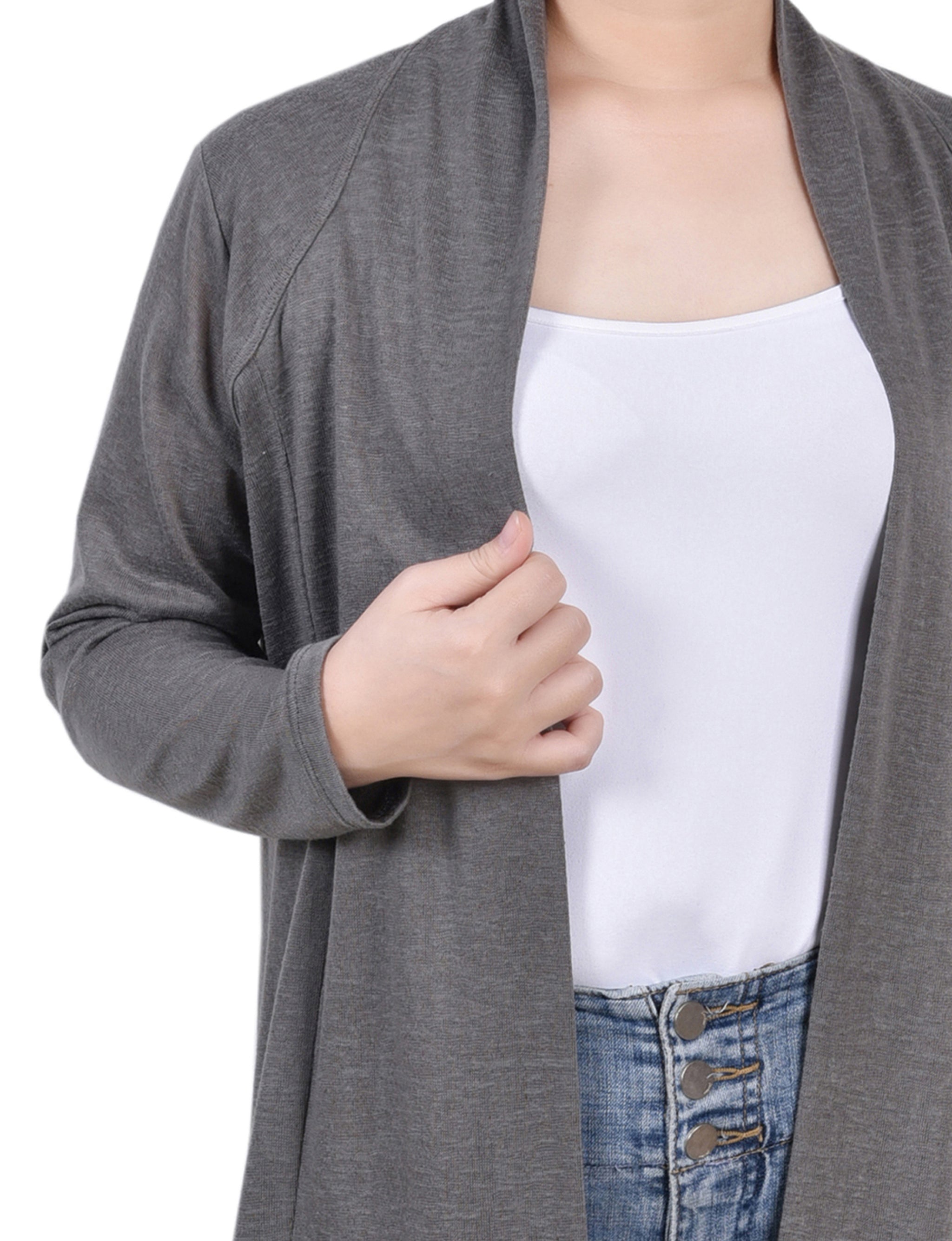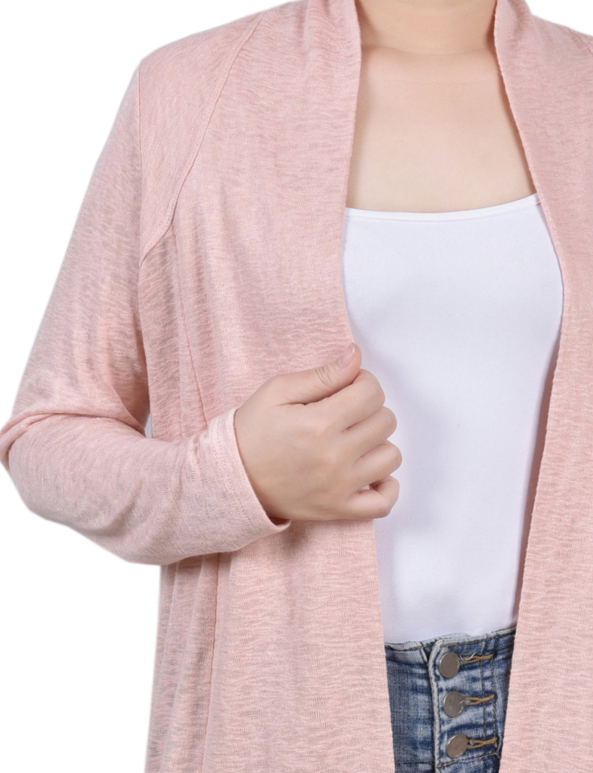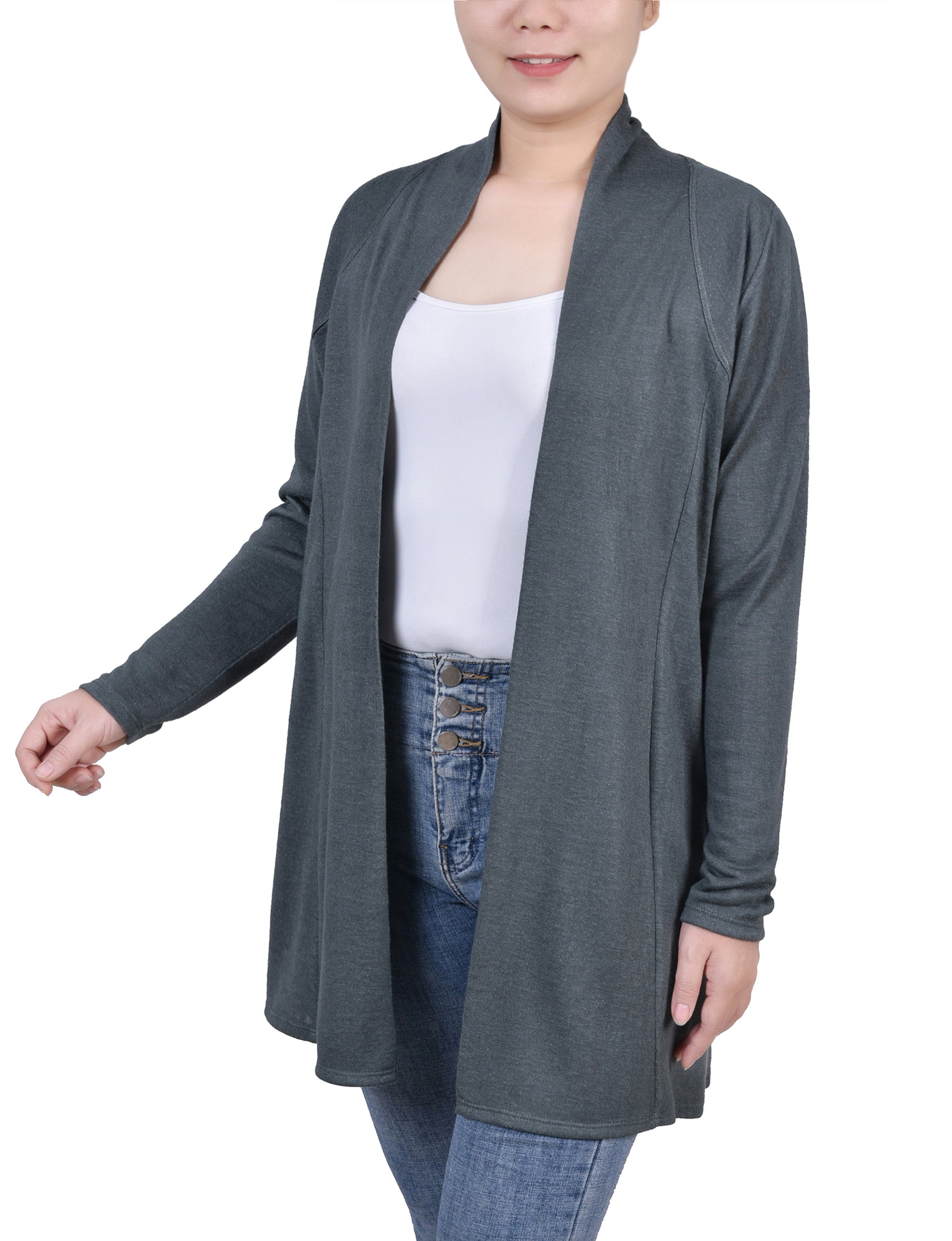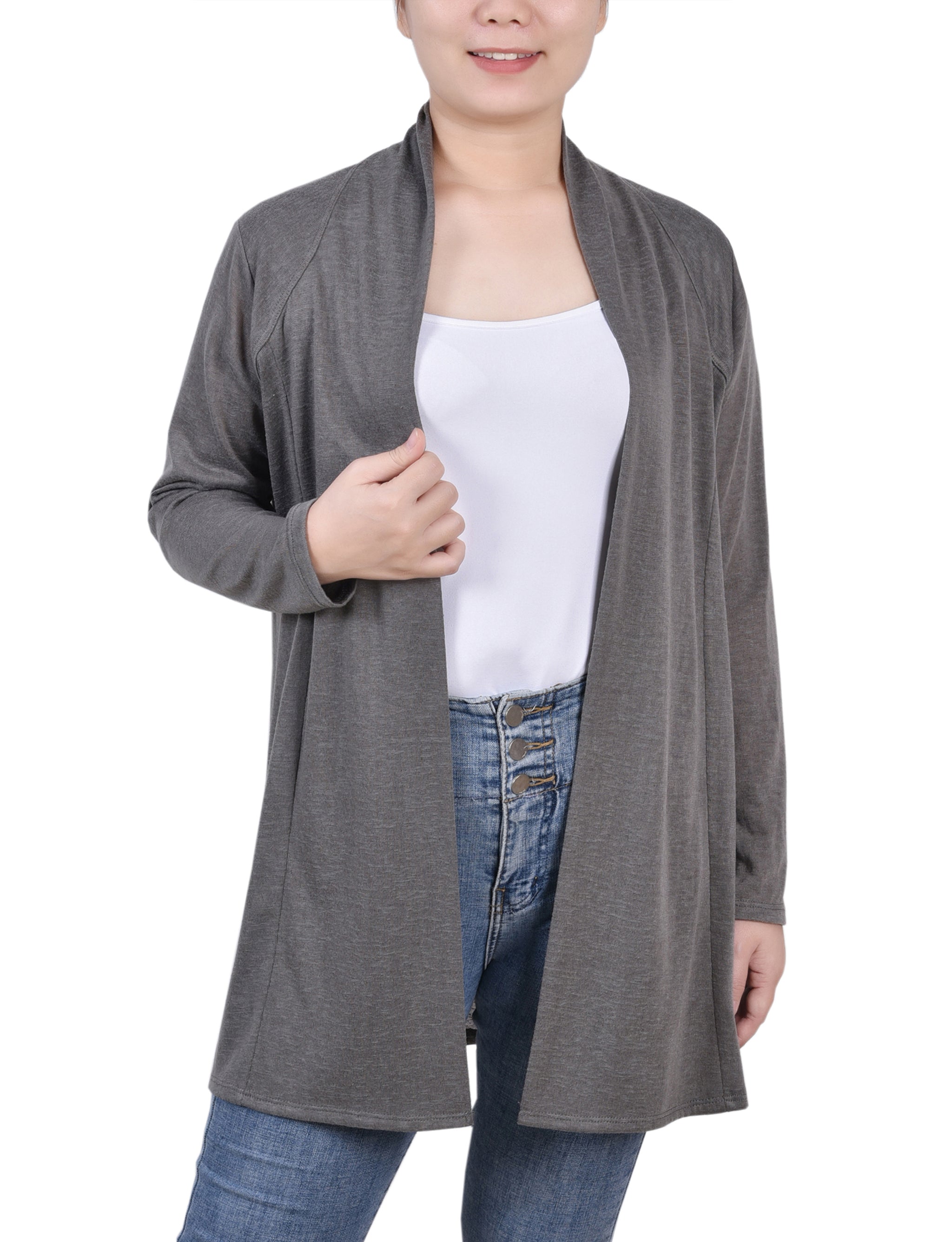 Stay cozy and stylish with this soft NY Collection knit cardigan. Designed with a relaxed open front and long sleeves, it’s perfect for layering over your favorite outfits. Its lightweight fabric makes it a versatile piece for all-day comfort.