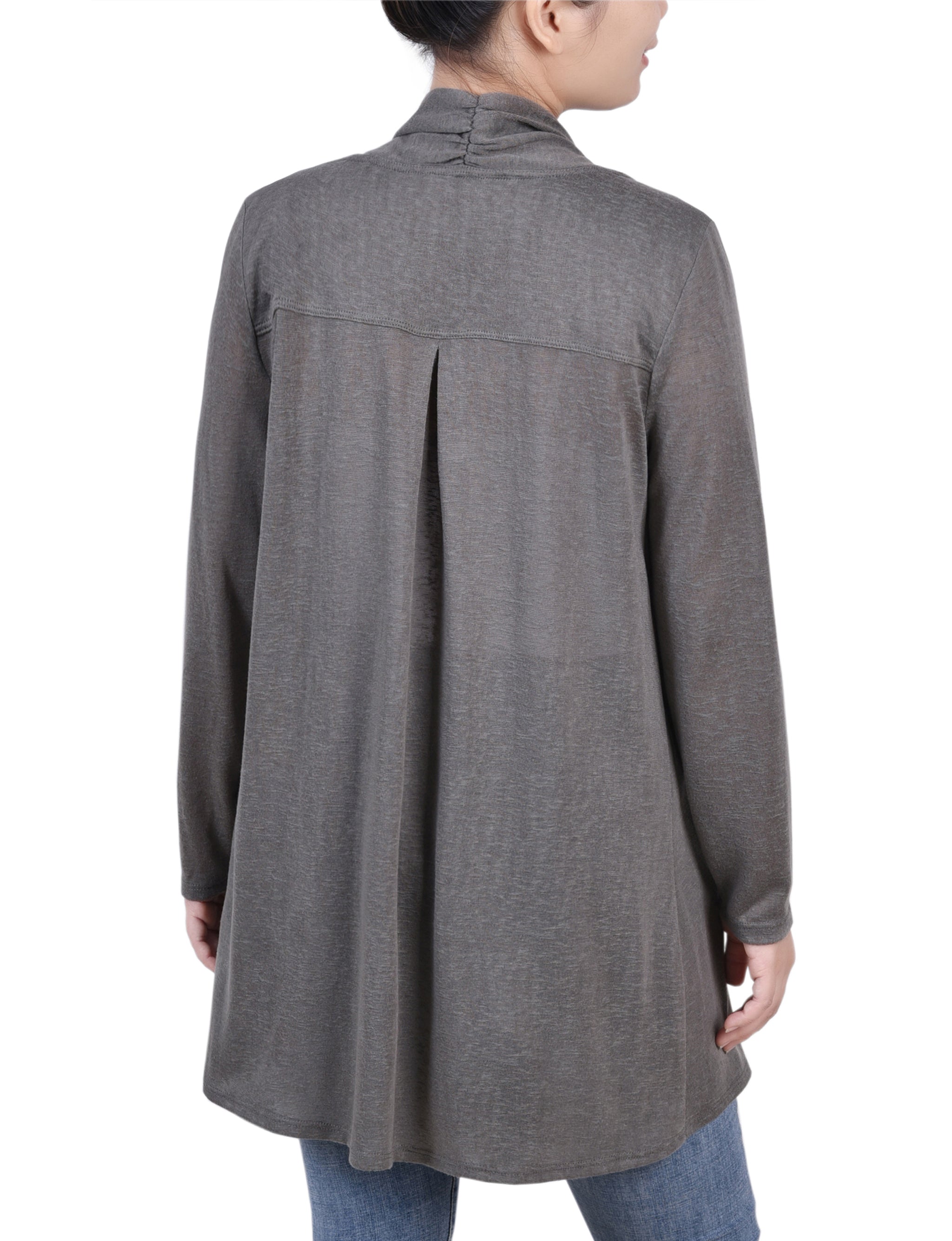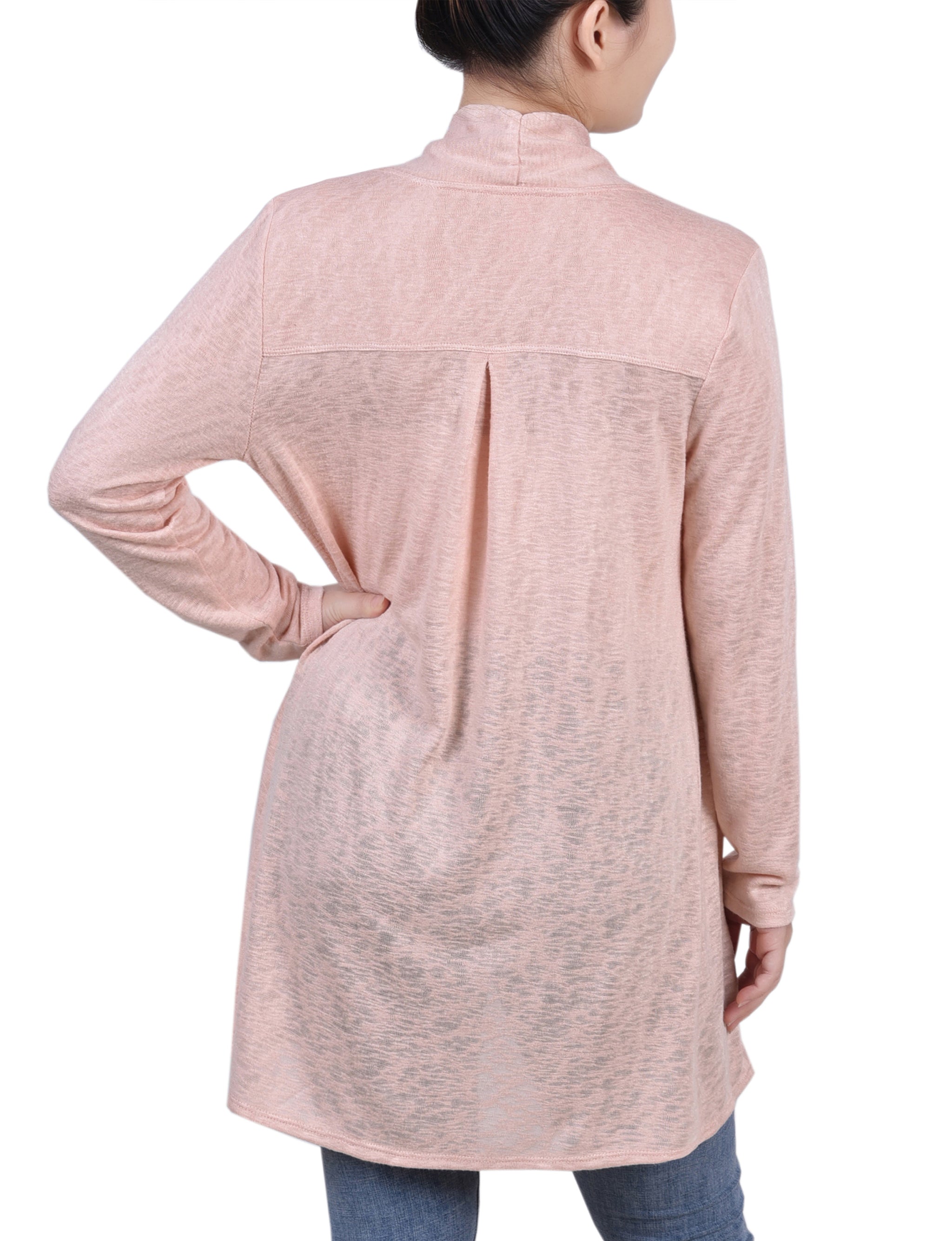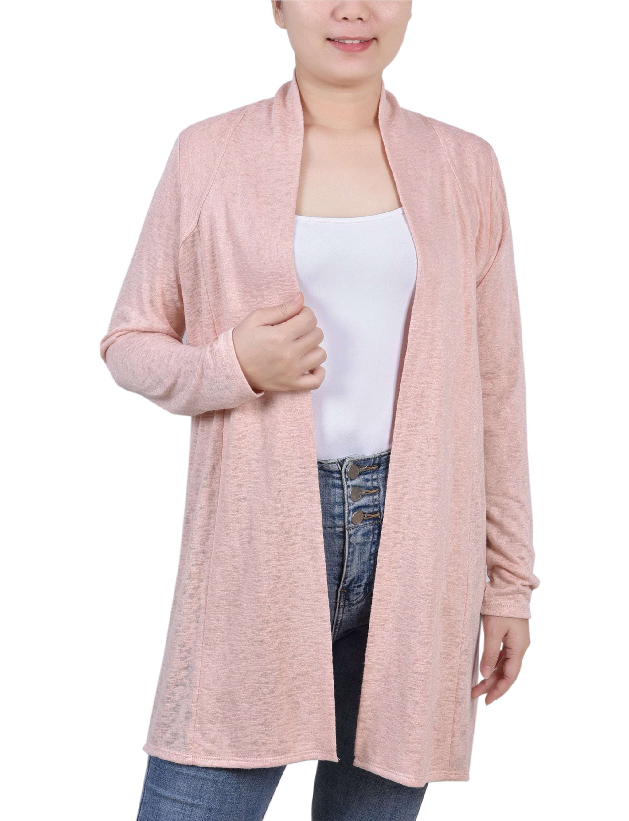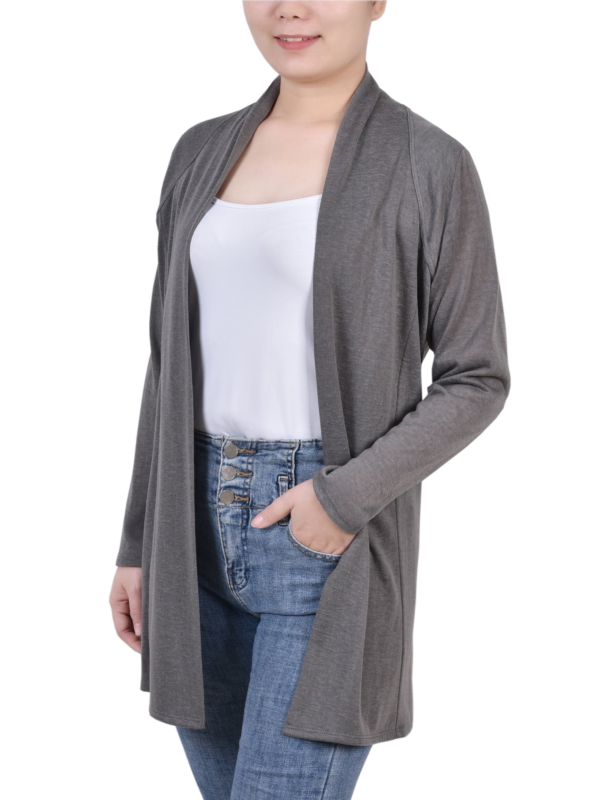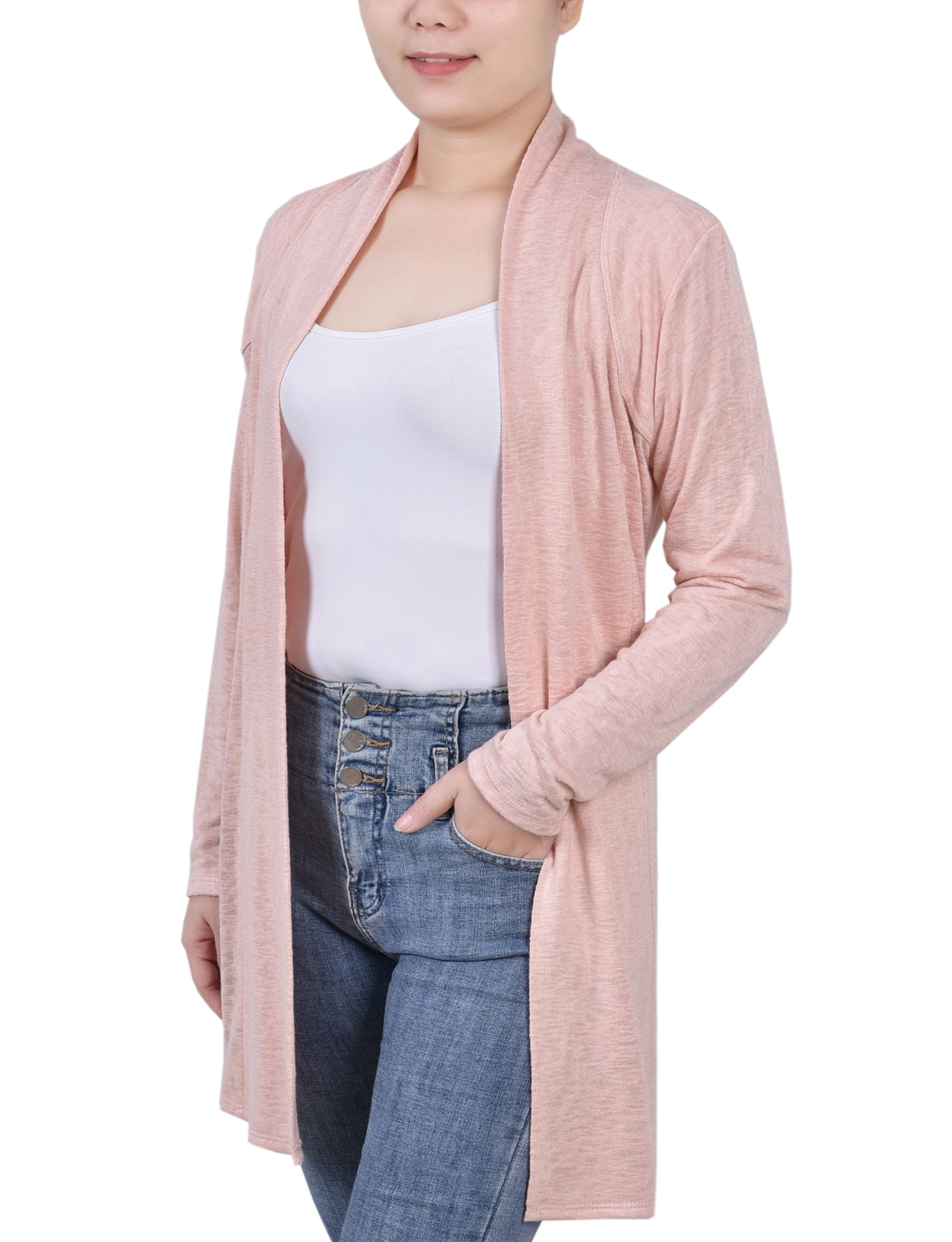 Stay cozy and stylish with this soft NY Collection knit cardigan. Designed with a relaxed open front and long sleeves, it’s perfect for layering over your favorite outfits. Its lightweight fabric makes it a versatile piece for all-day comfort.