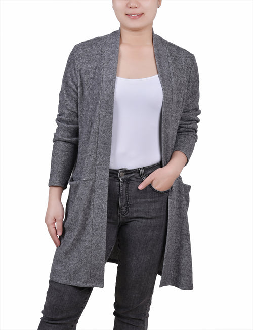Petite 3/4 Sleeve Open Front Waffle Weave Cardigan