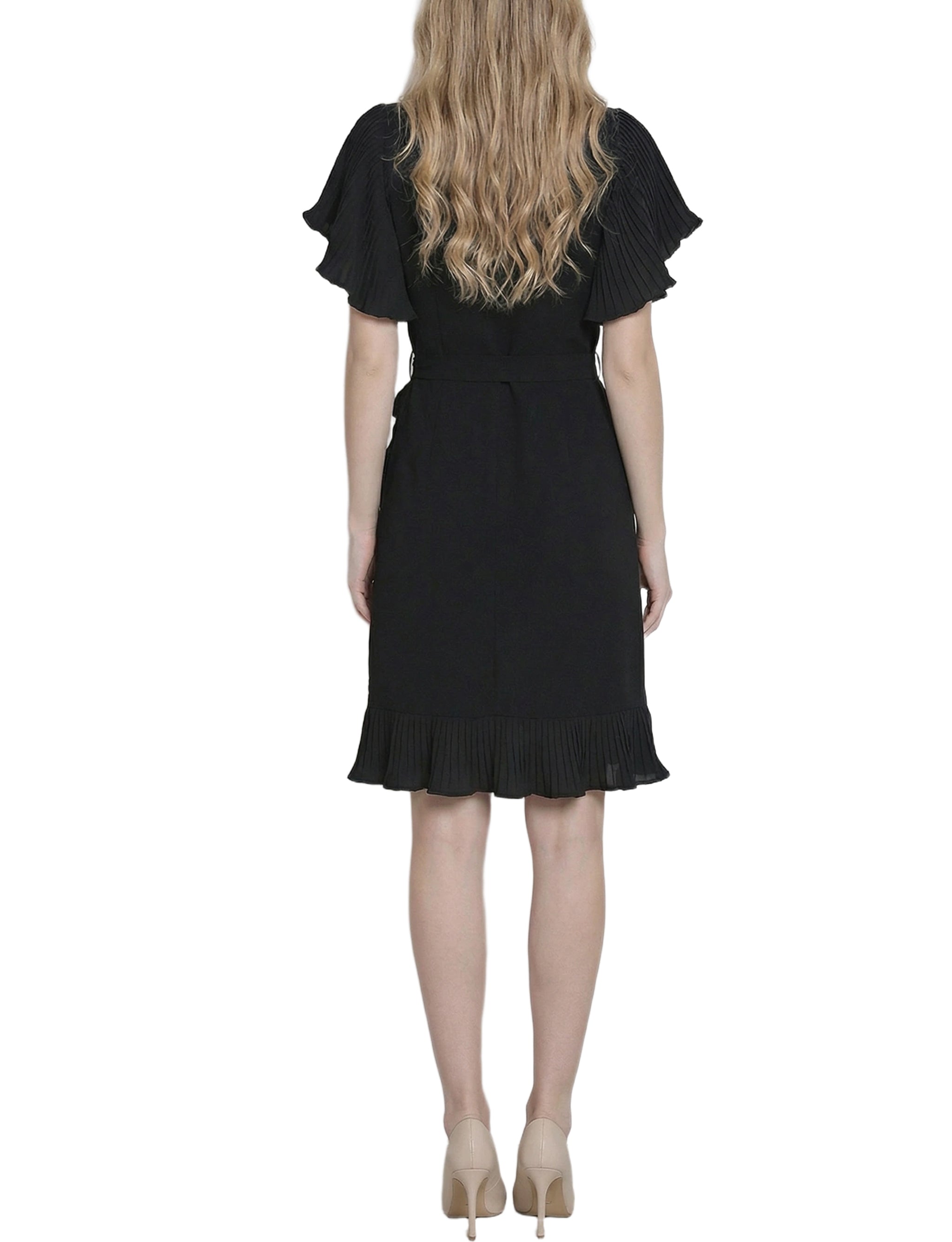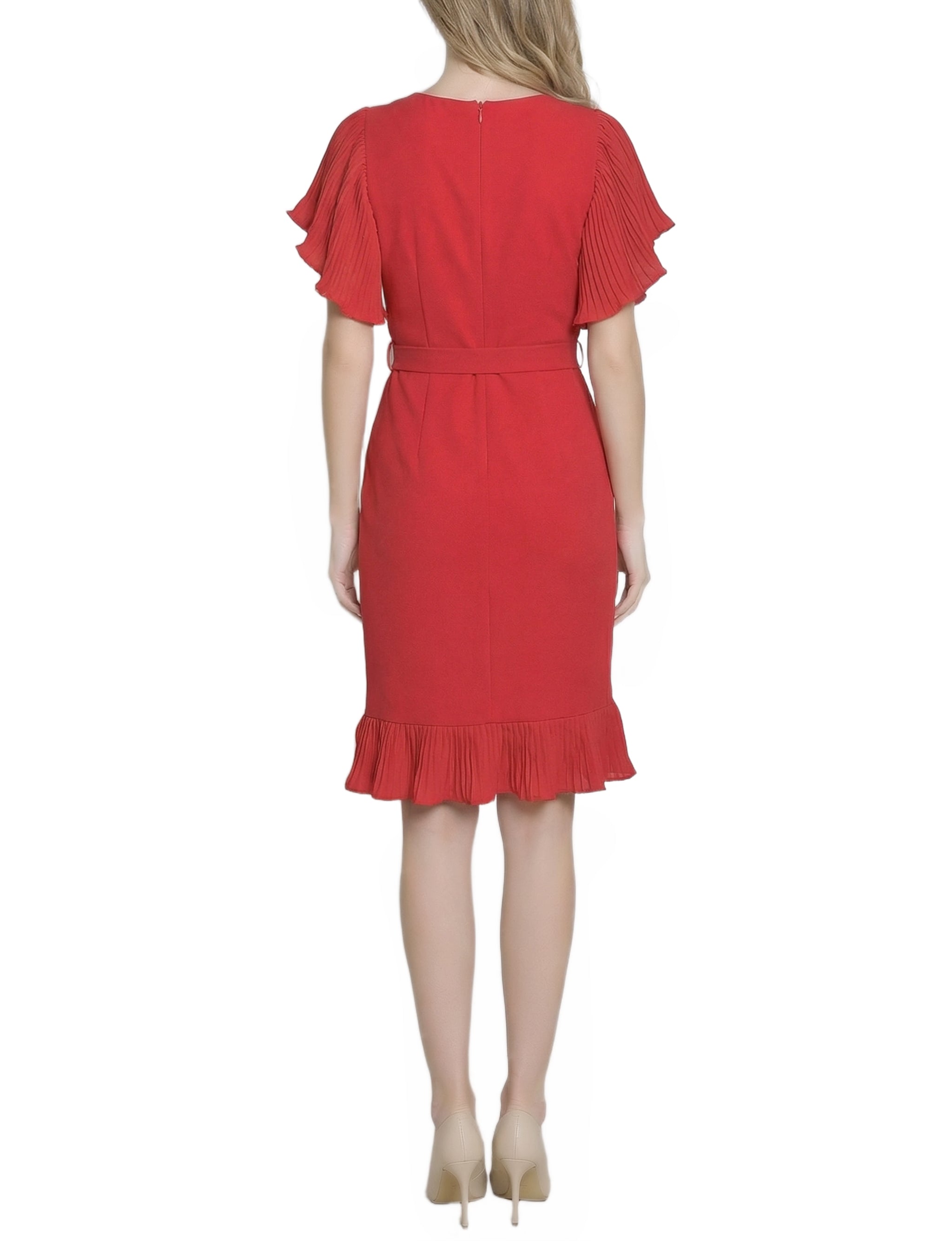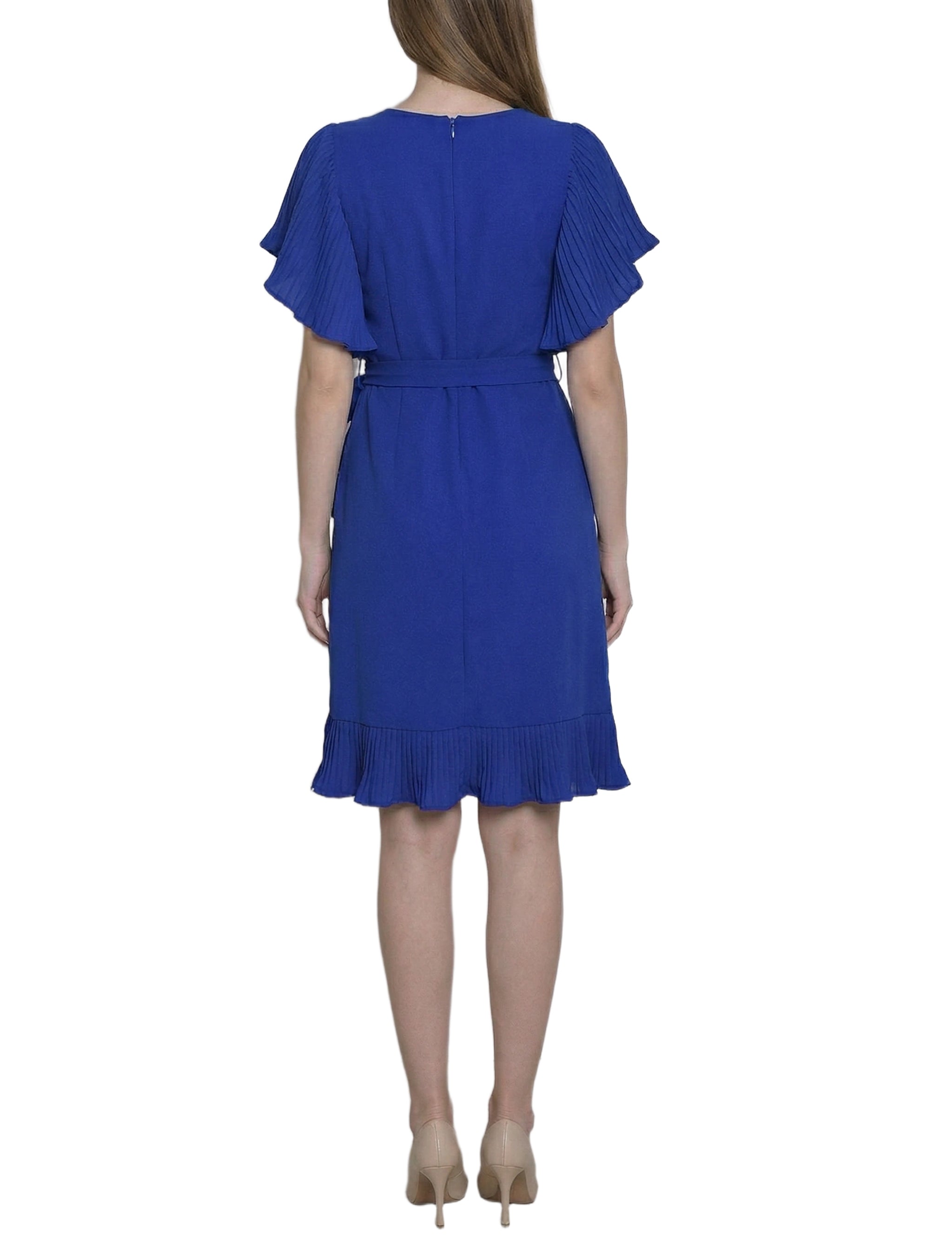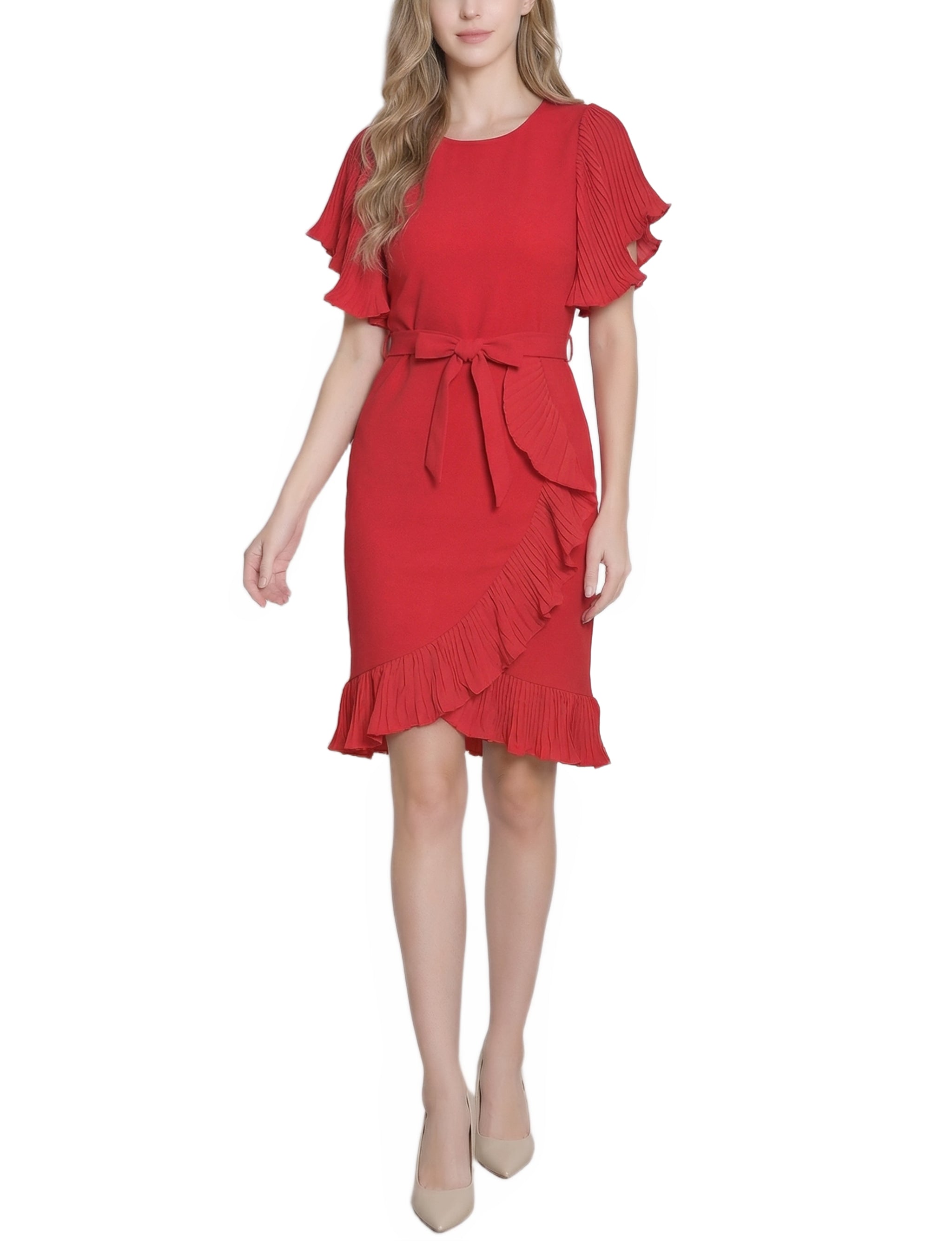 Petite Short Sleeve Pleated Ruffle Dress