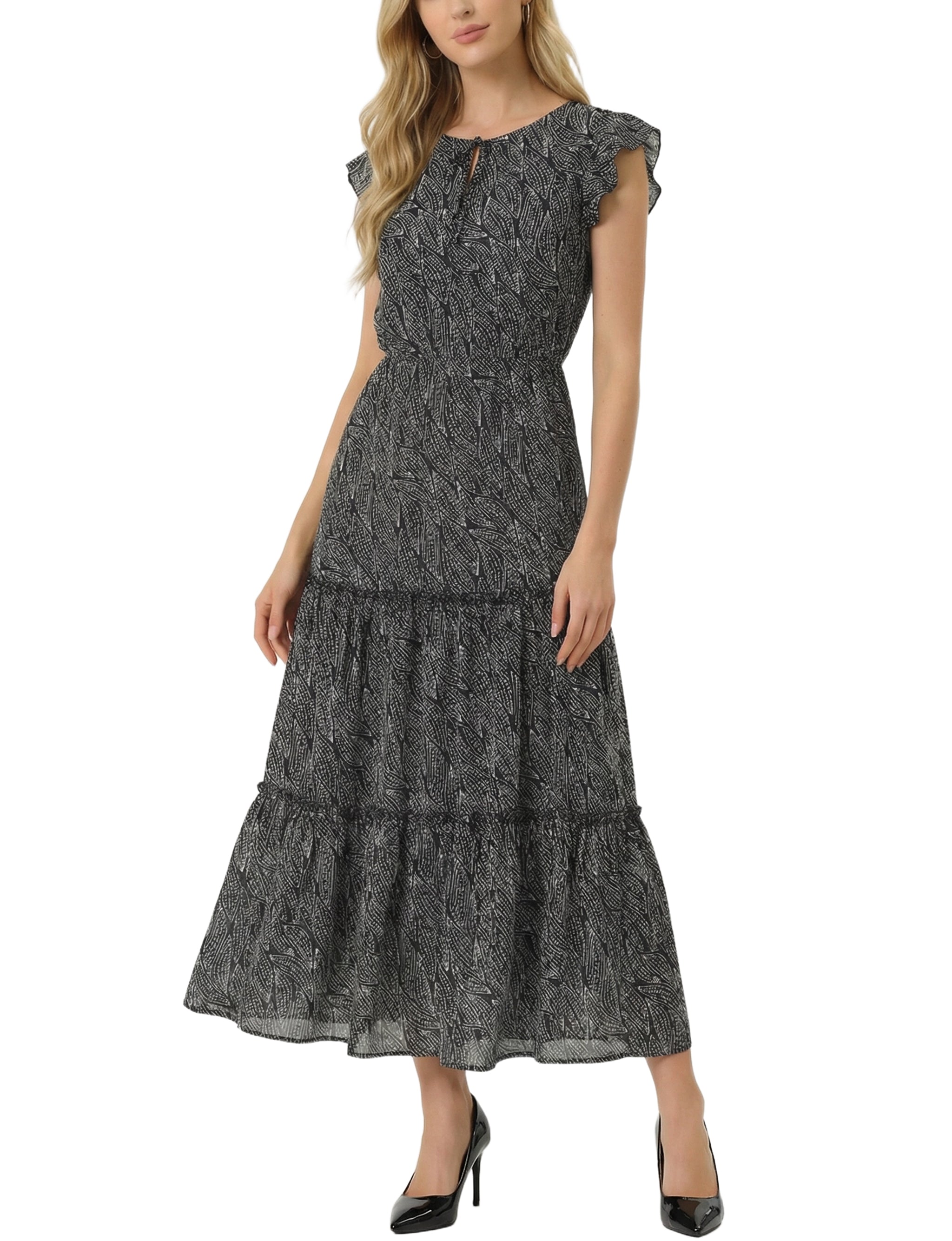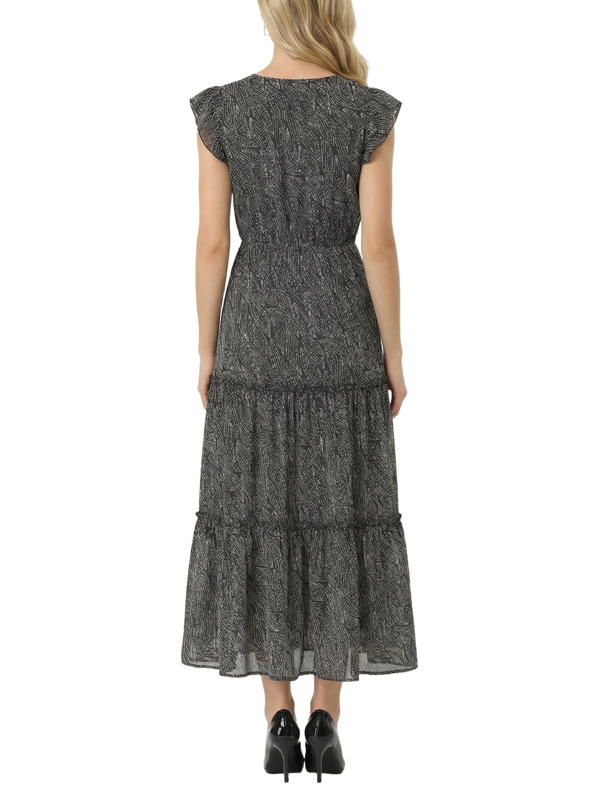 Flutter Sleeve Tiered Dress
