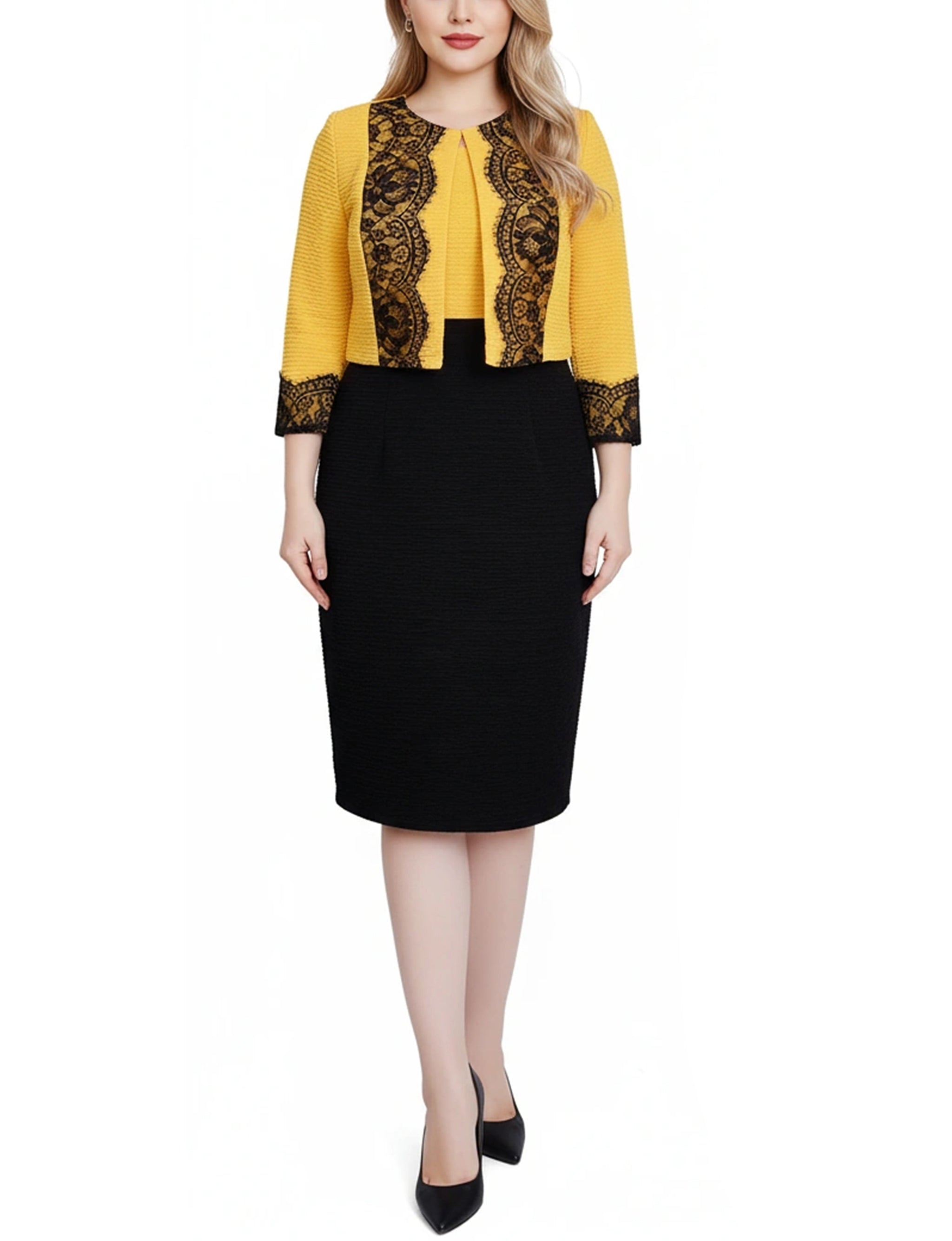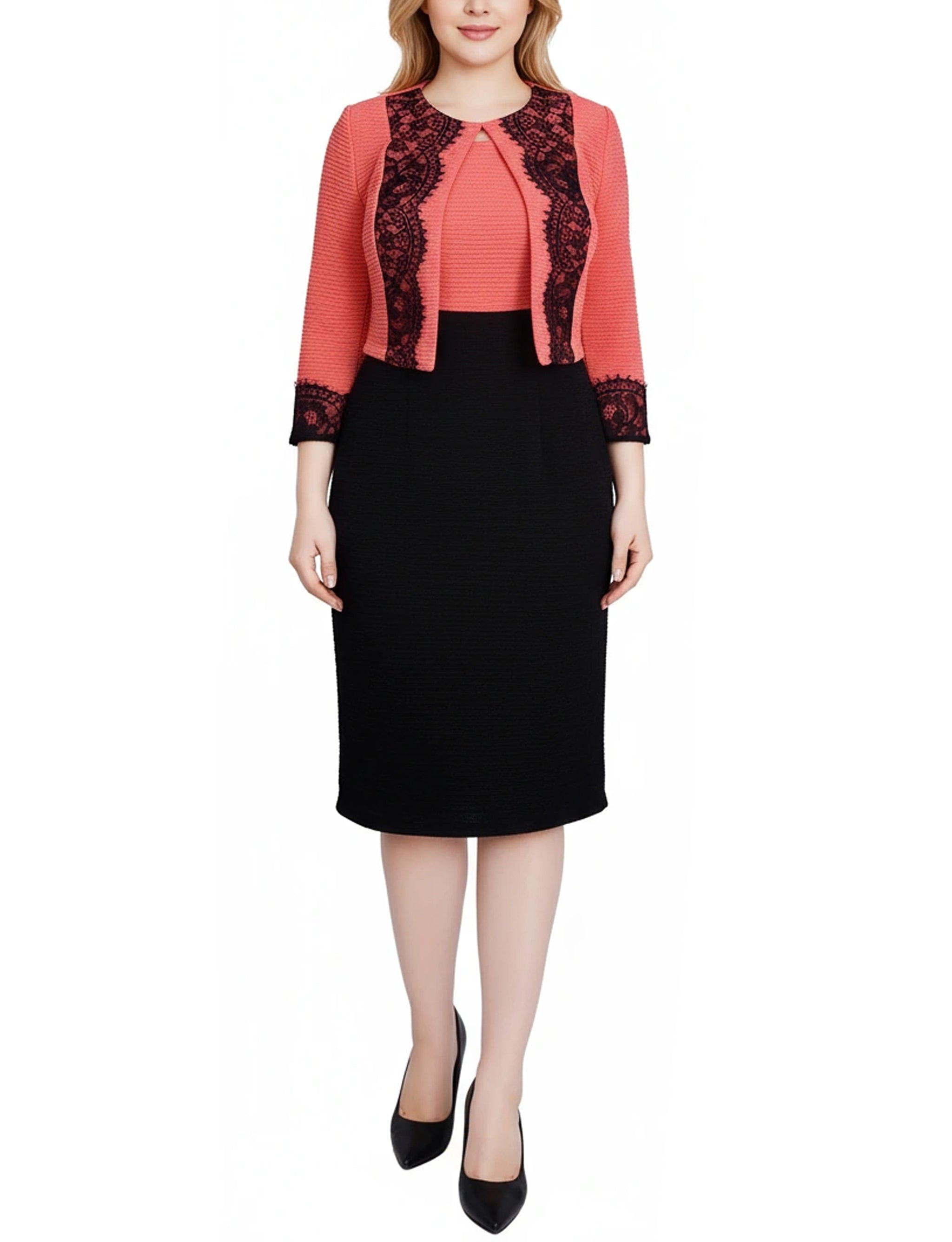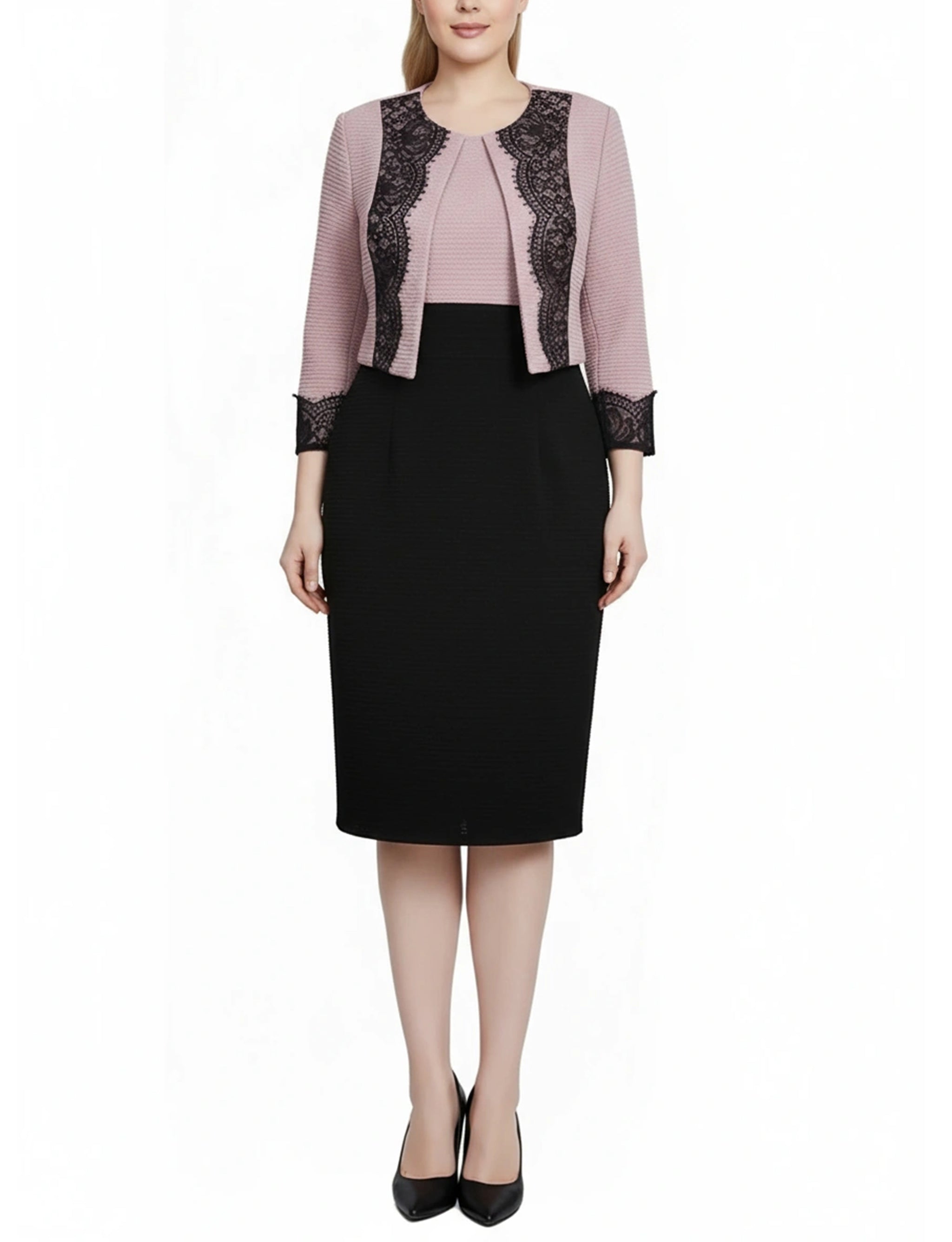 •Missy Lace-Detail 2 Piece Textured Knit Dress Set