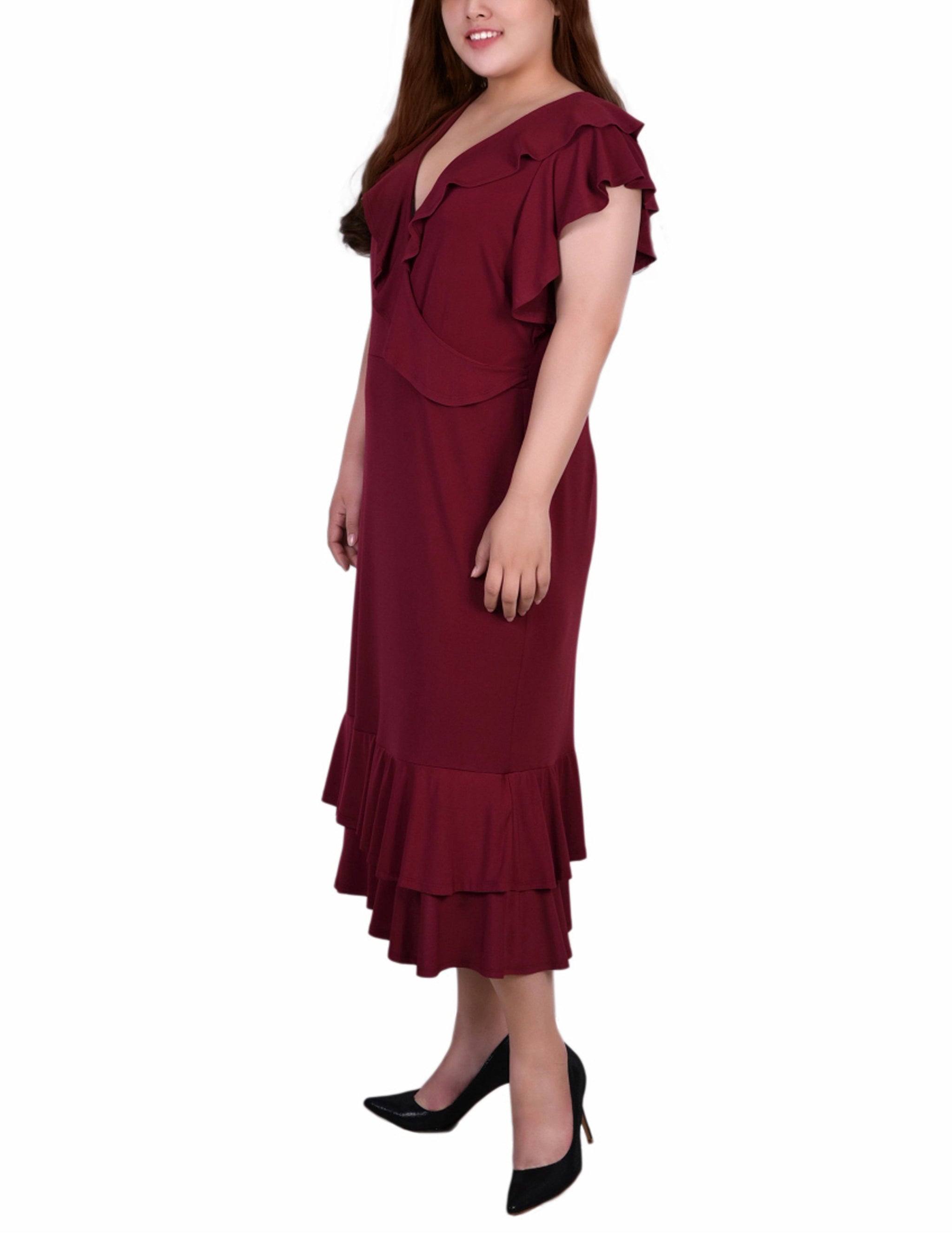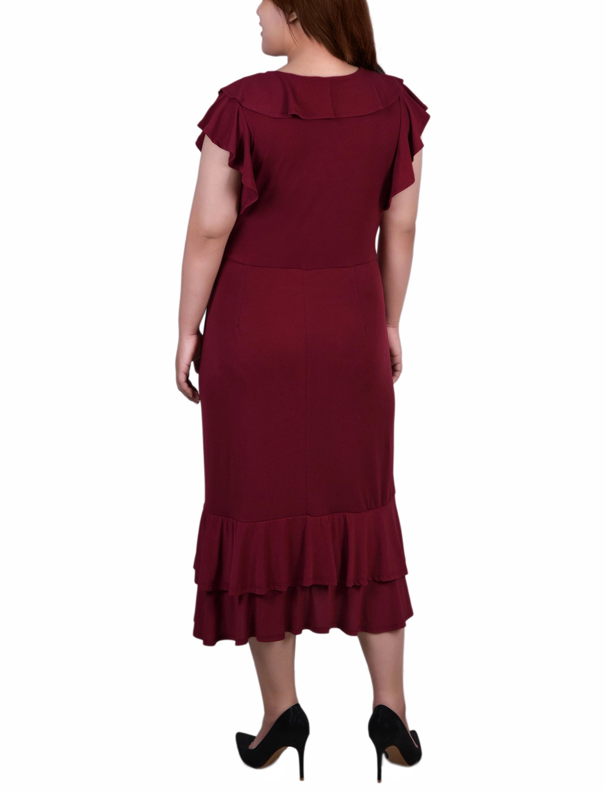 Plus Size Short flutter Sleeve Ruffle Neck Dress