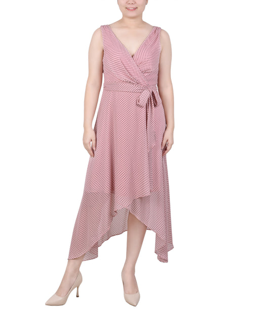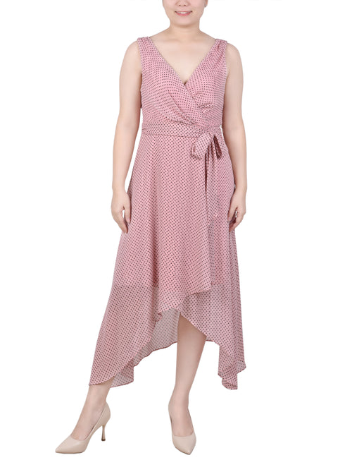 Plus Size 3/4 Sleeve Belted Chiffon Hankerchief Hem Dress