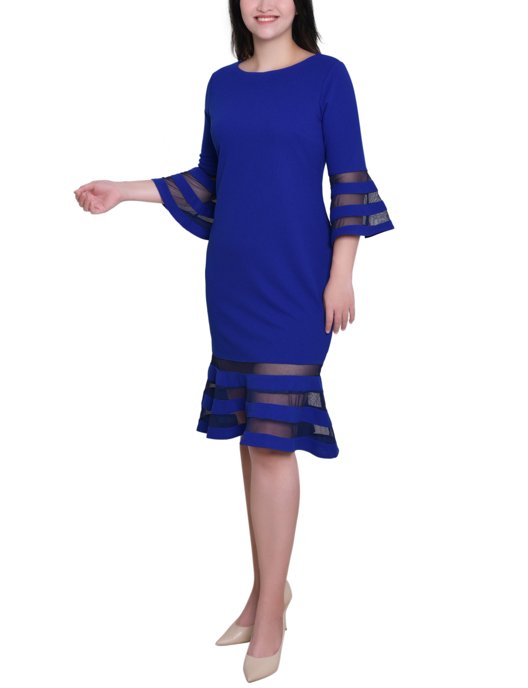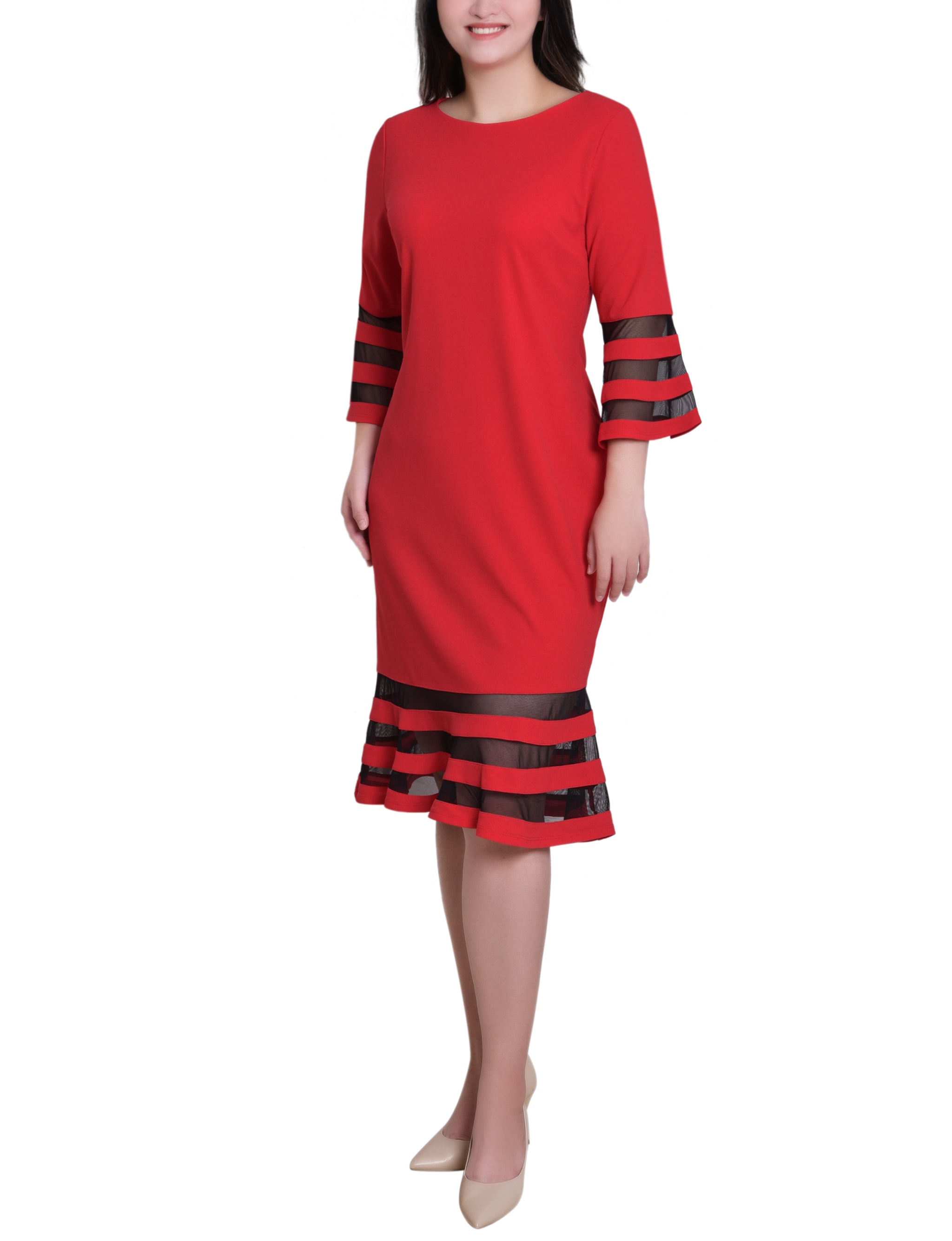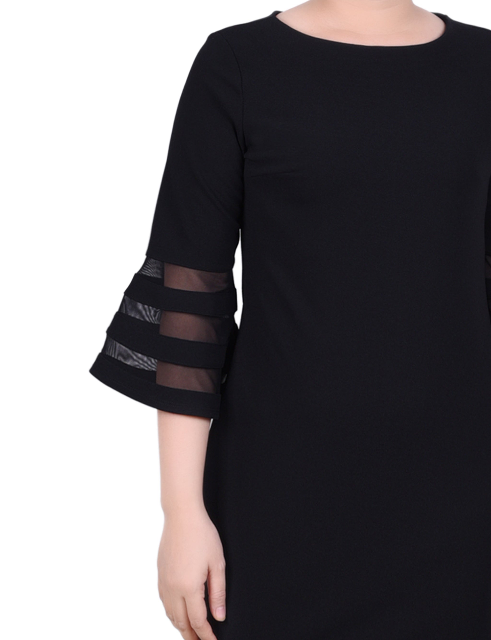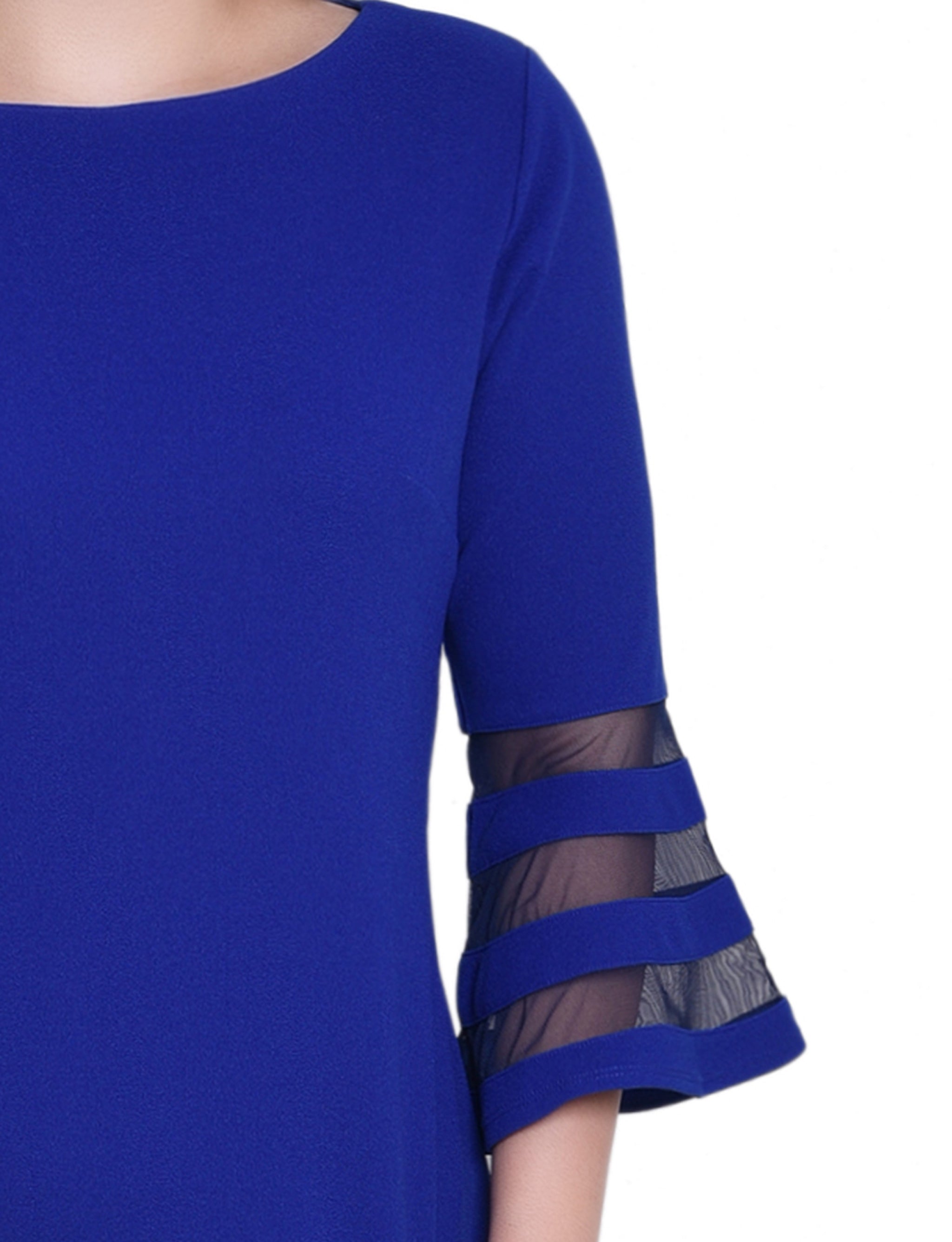 A sleek look that can easily transition from day to night. The sophisticated silhouette is made with comfortable scuba crepe fabric and mesh contrast, for an elevated style.