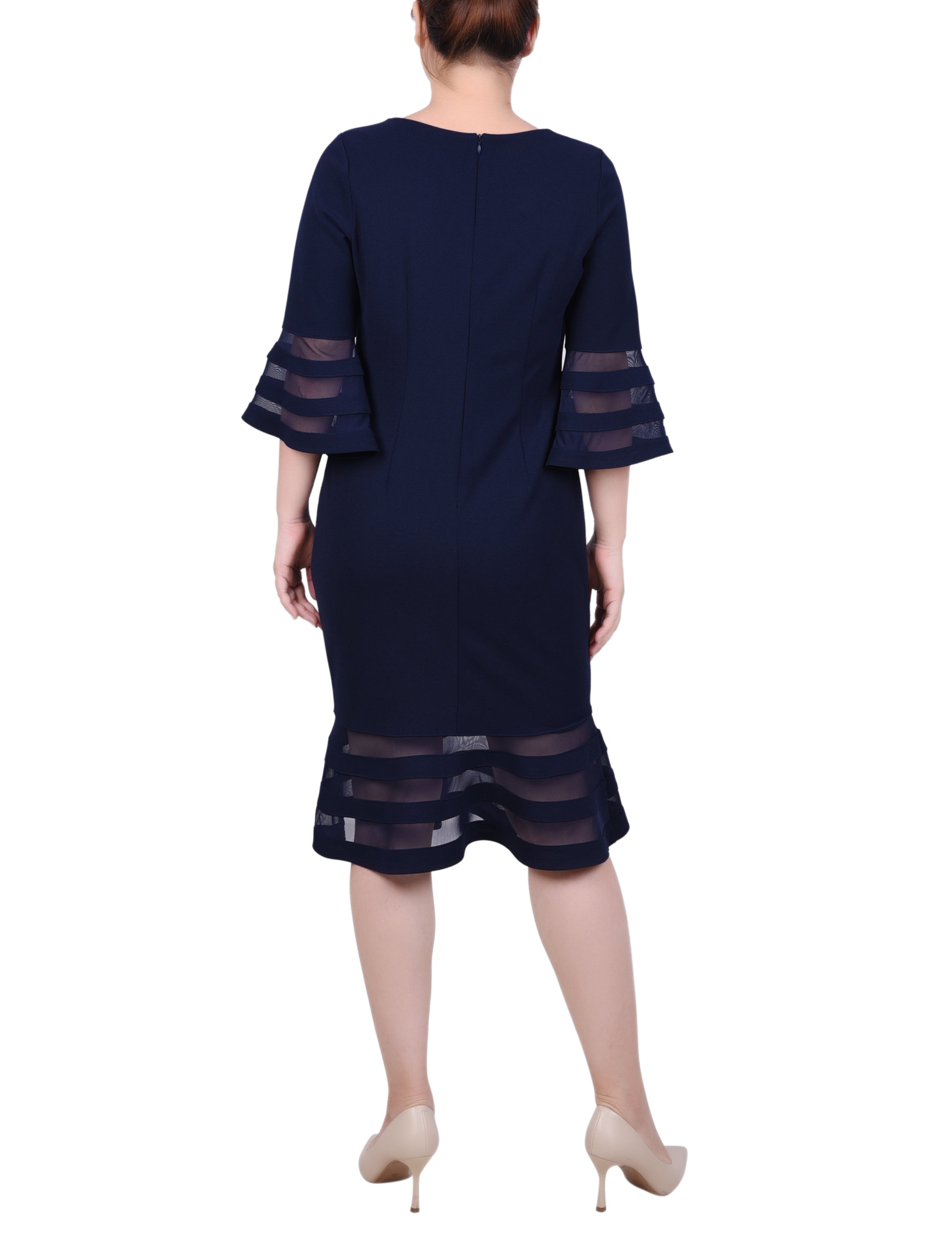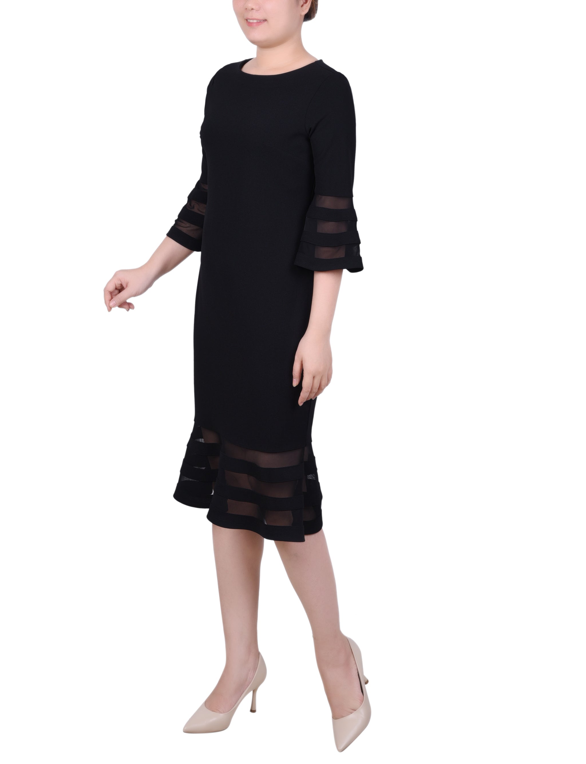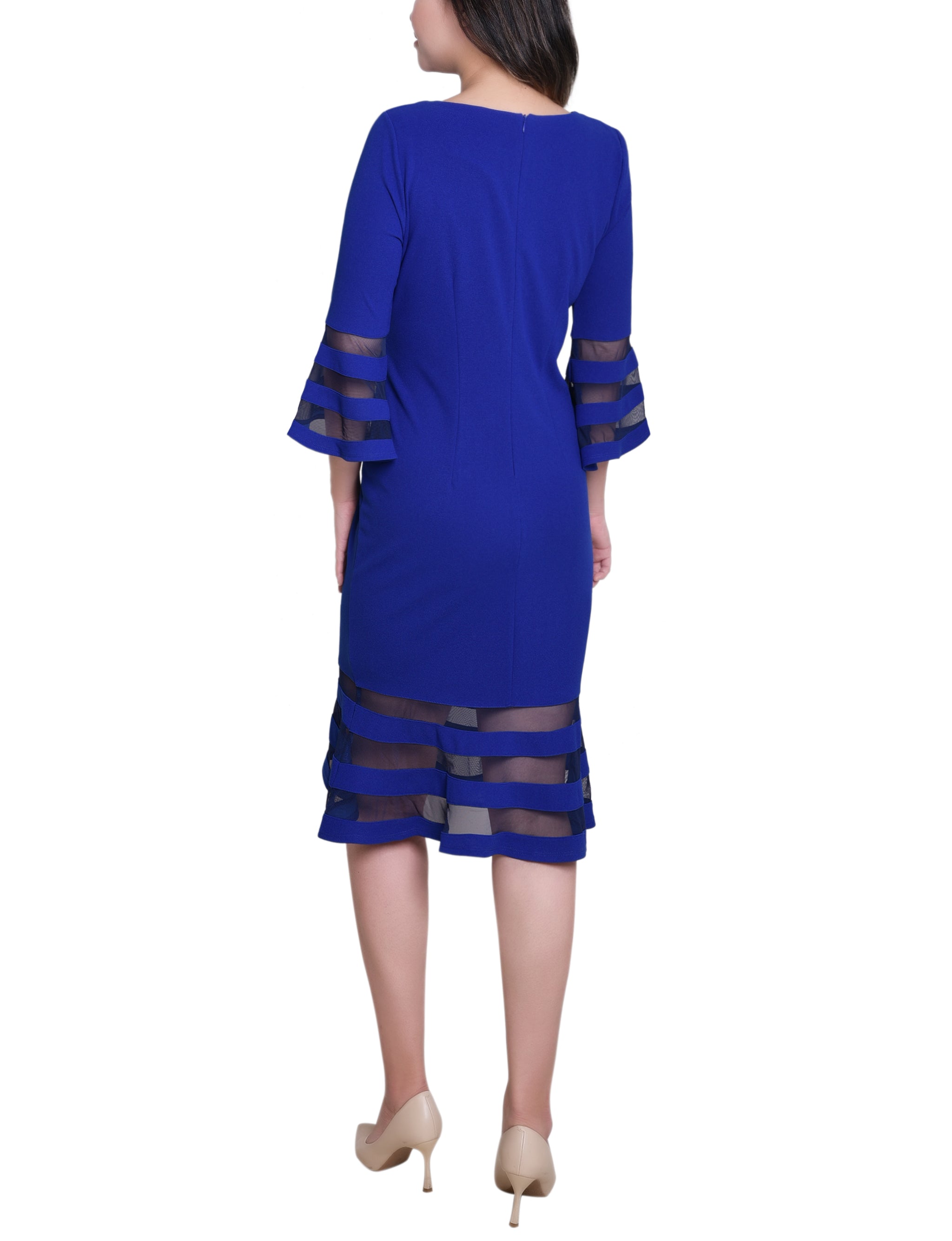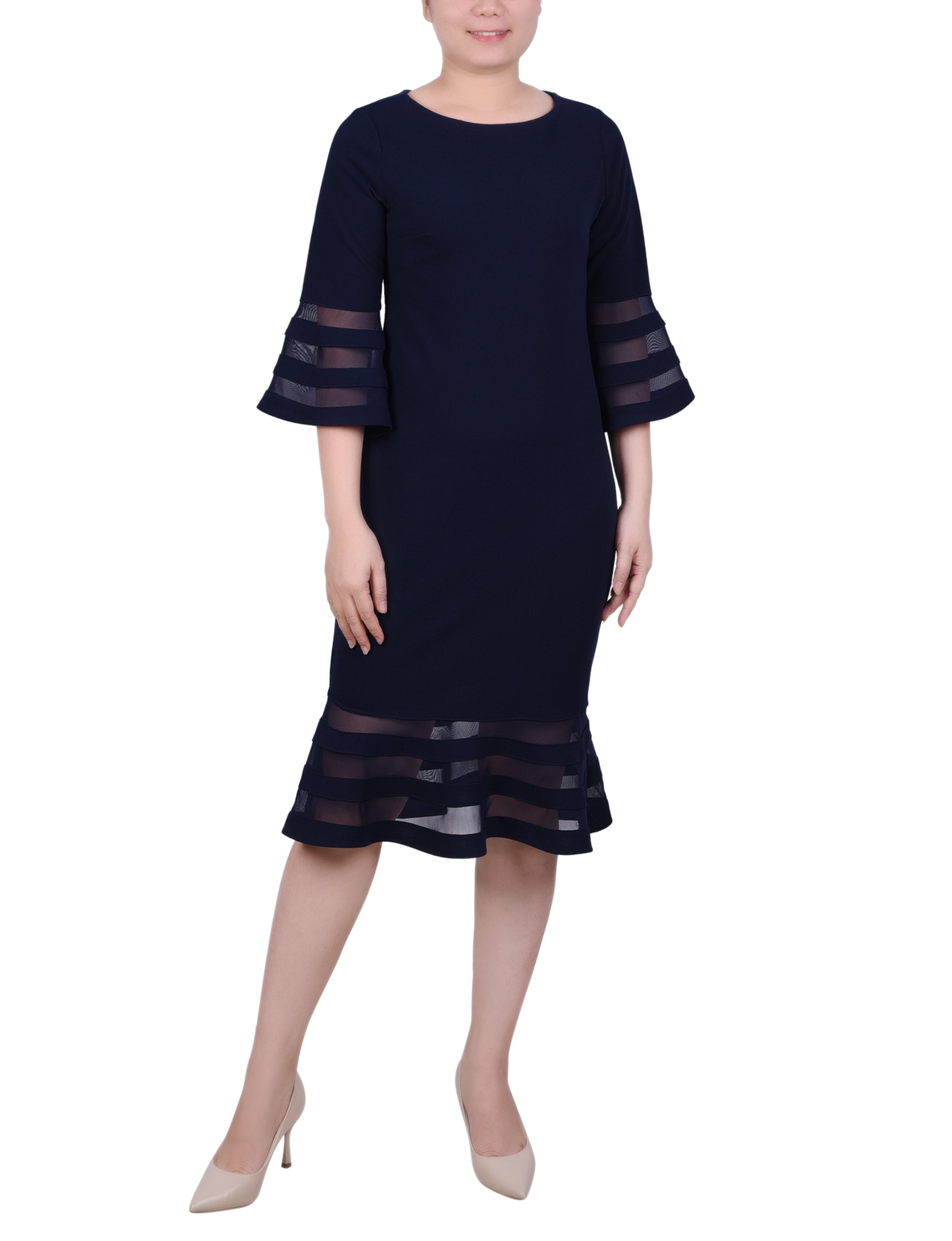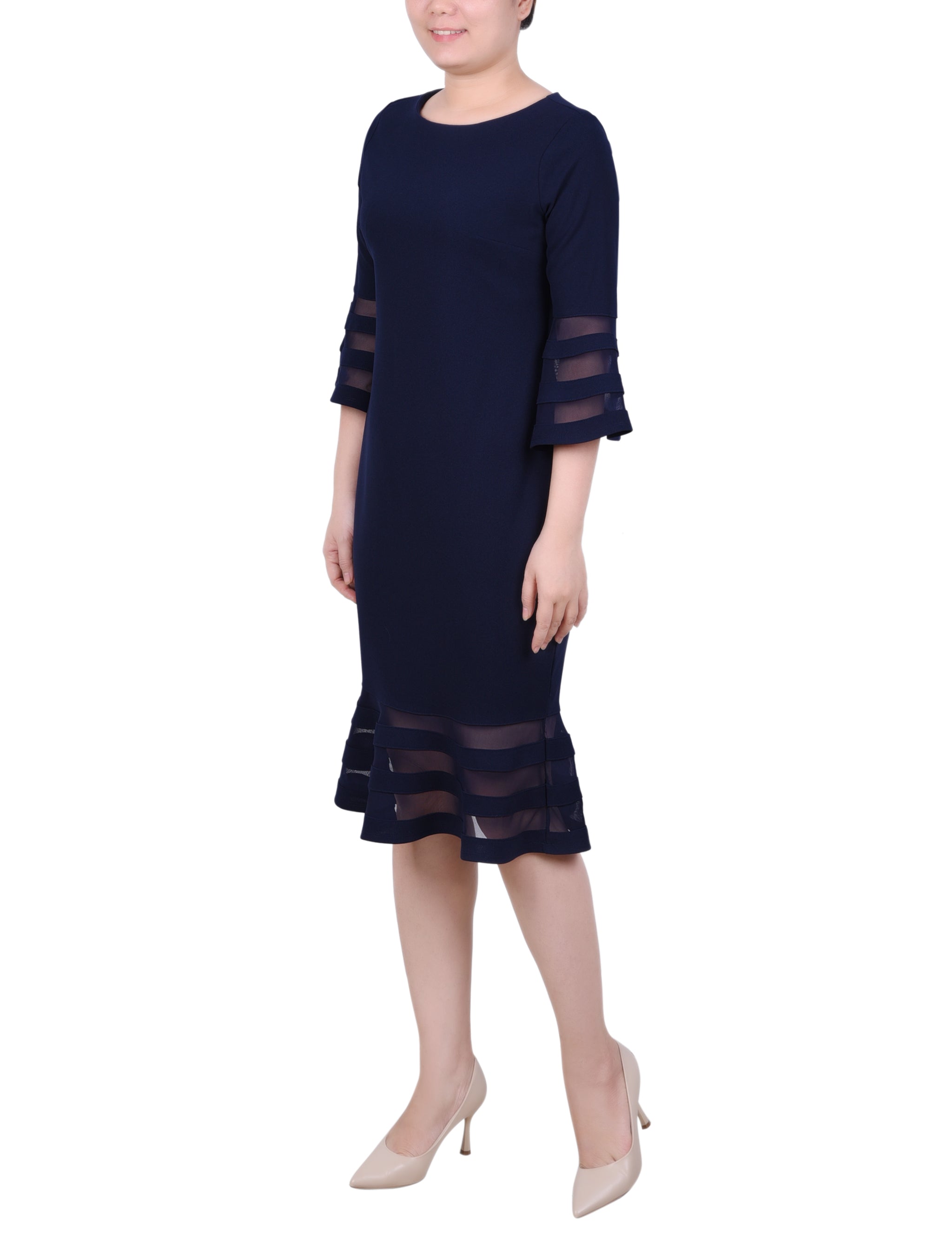 A sleek look that can easily transition from day to night. The sophisticated silhouette is made with comfortable scuba crepe fabric and mesh contrast, for an elevated style.