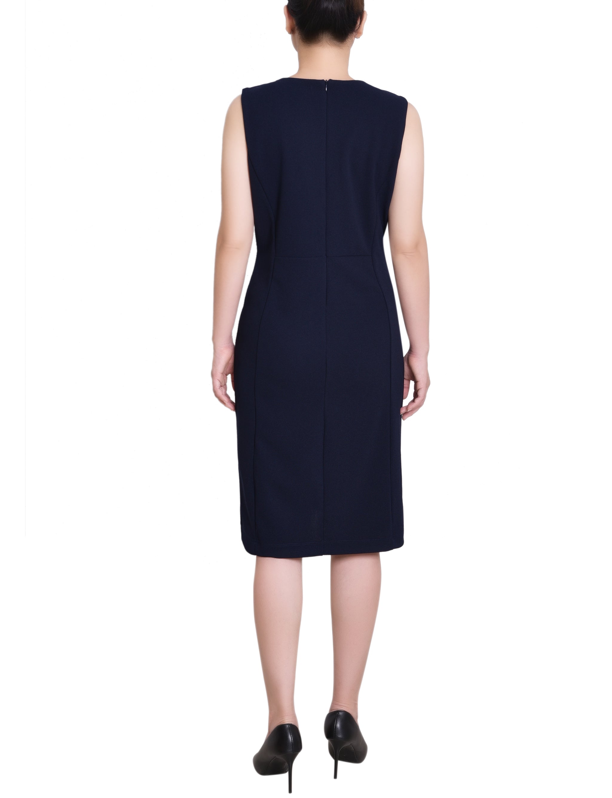 Make a bold statement in this NY Collection sleek red sheath dress, designed with figure-flattering seams and accented with gold-tone studs for a touch of edge. Perfect for work or evening outings.