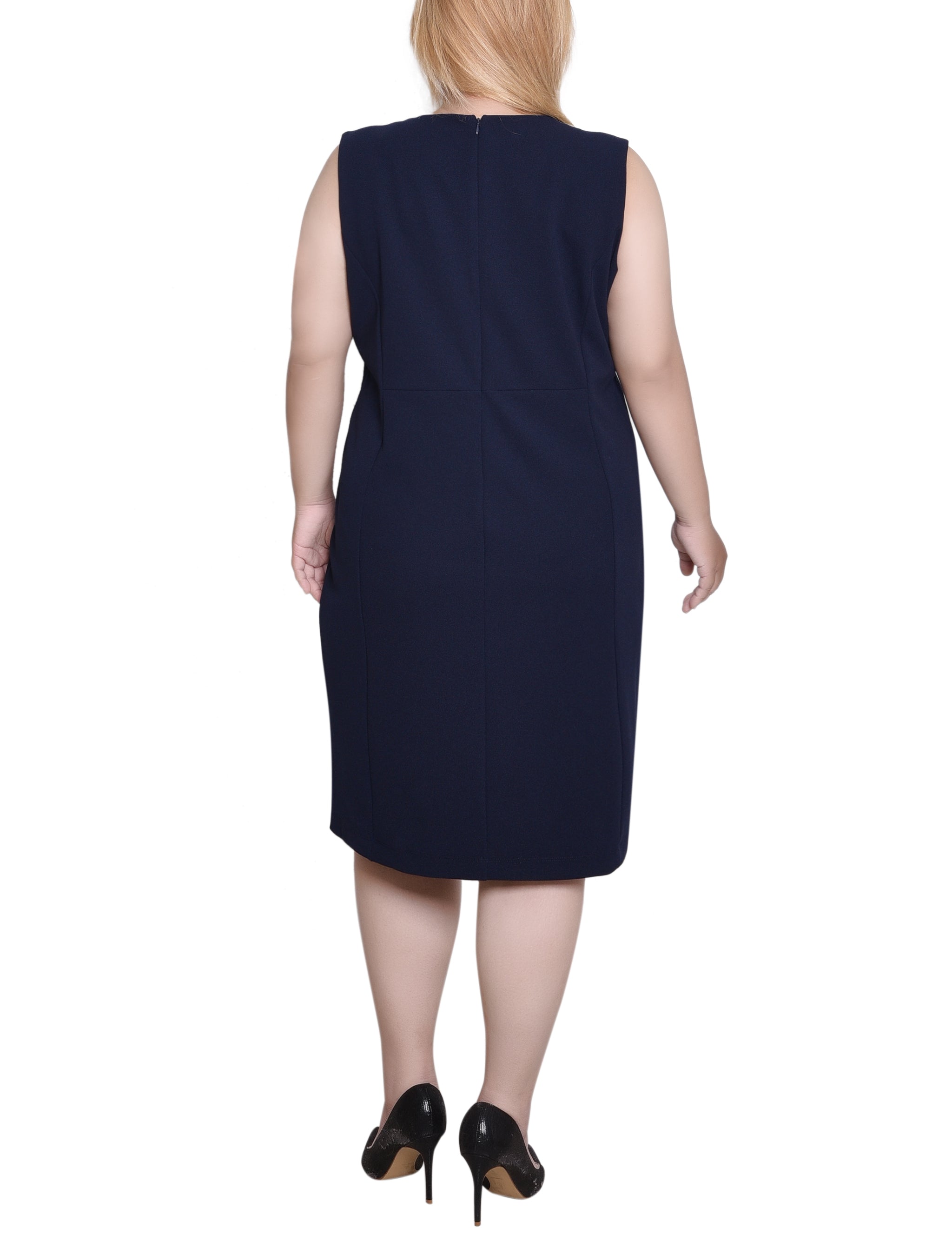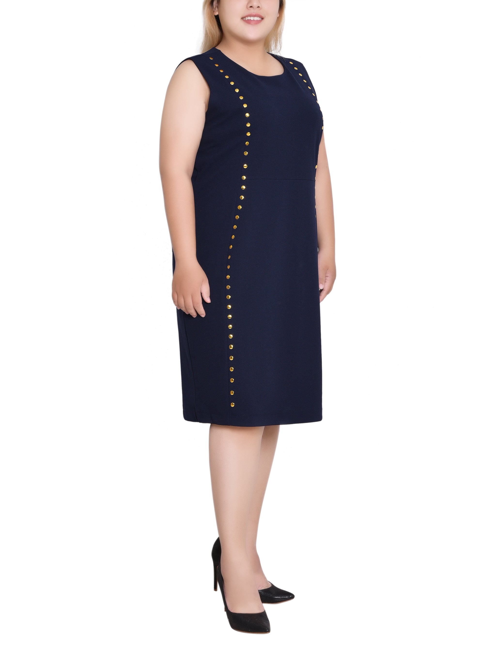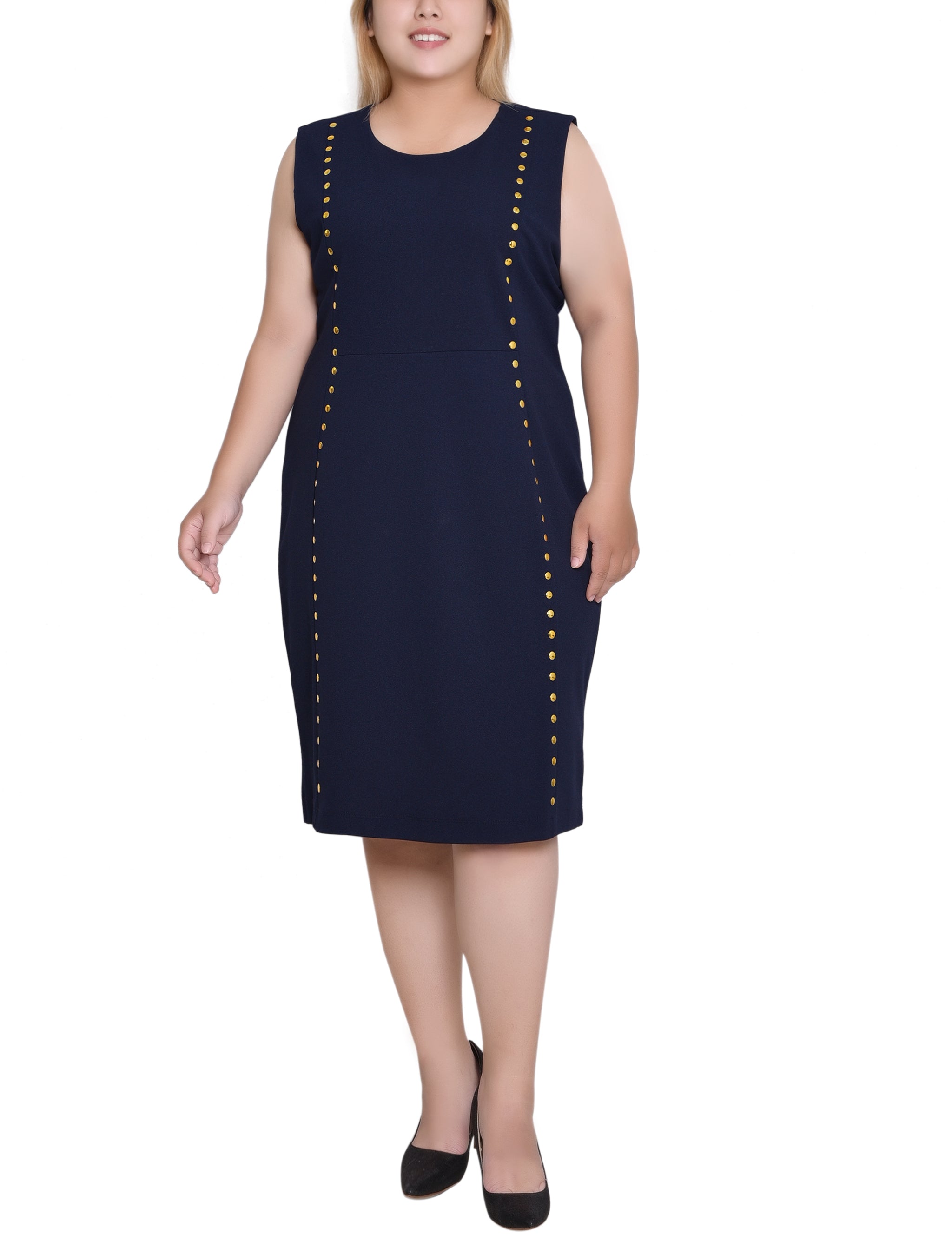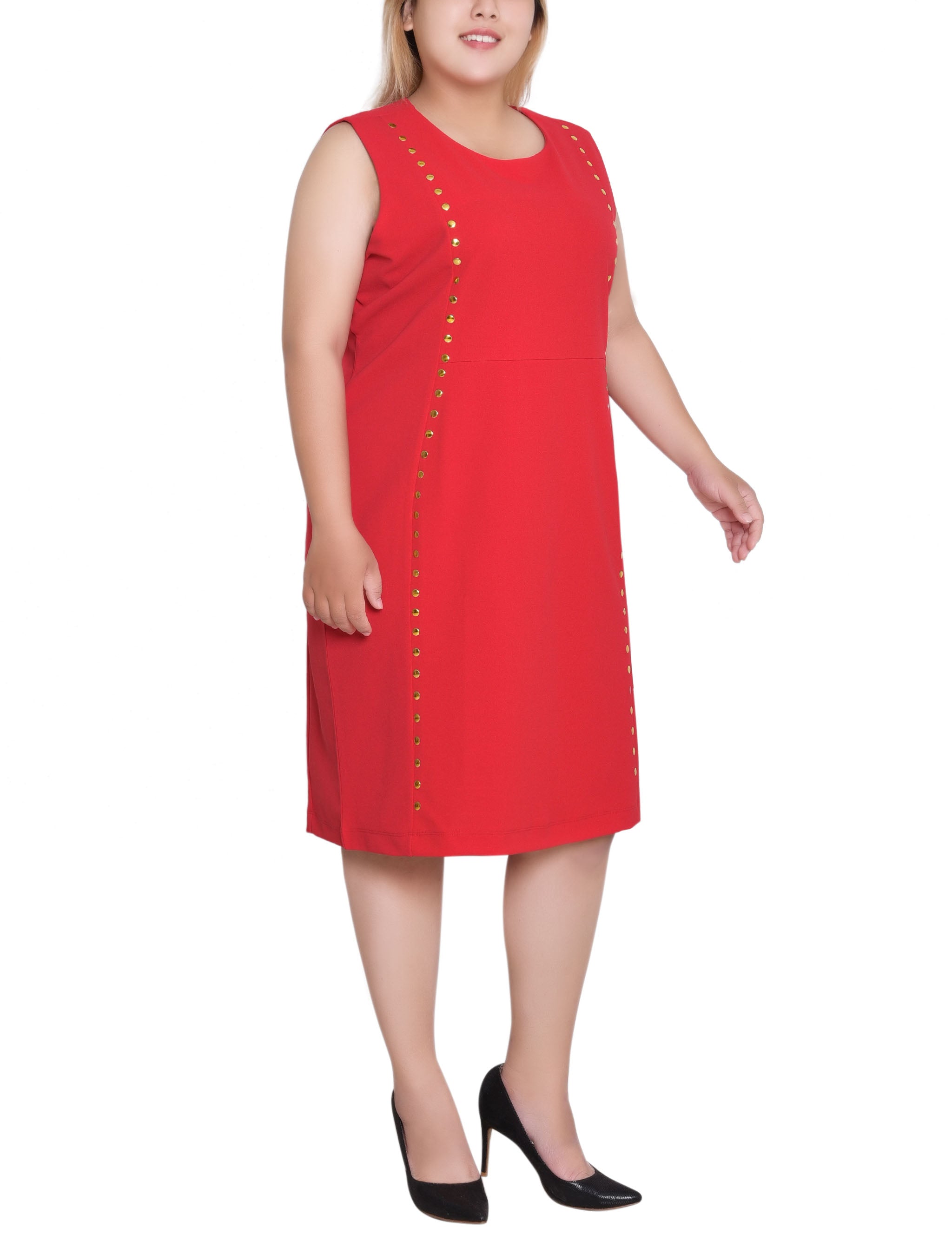 Make a bold statement in this NY Collection sleek red sheath dress, designed with figure-flattering seams and accented with gold-tone studs for a touch of edge. Perfect for work or evening outings.