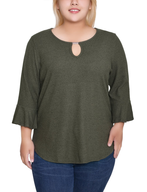 Plus Size 3/4 Bell Sleeve Top With Hardware