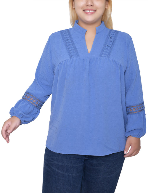 Plus Size Long Sleeve Blouse With Crochet Trim