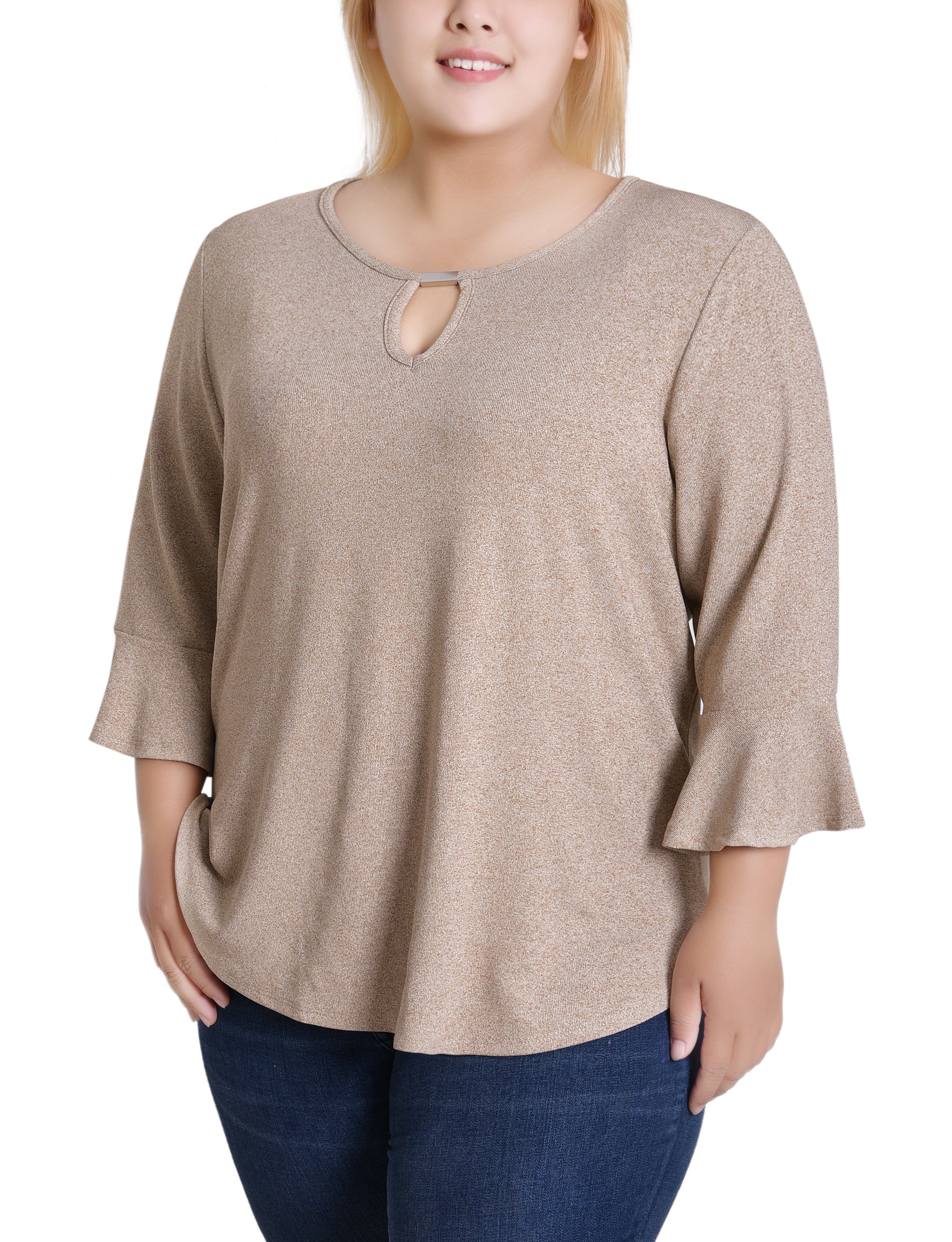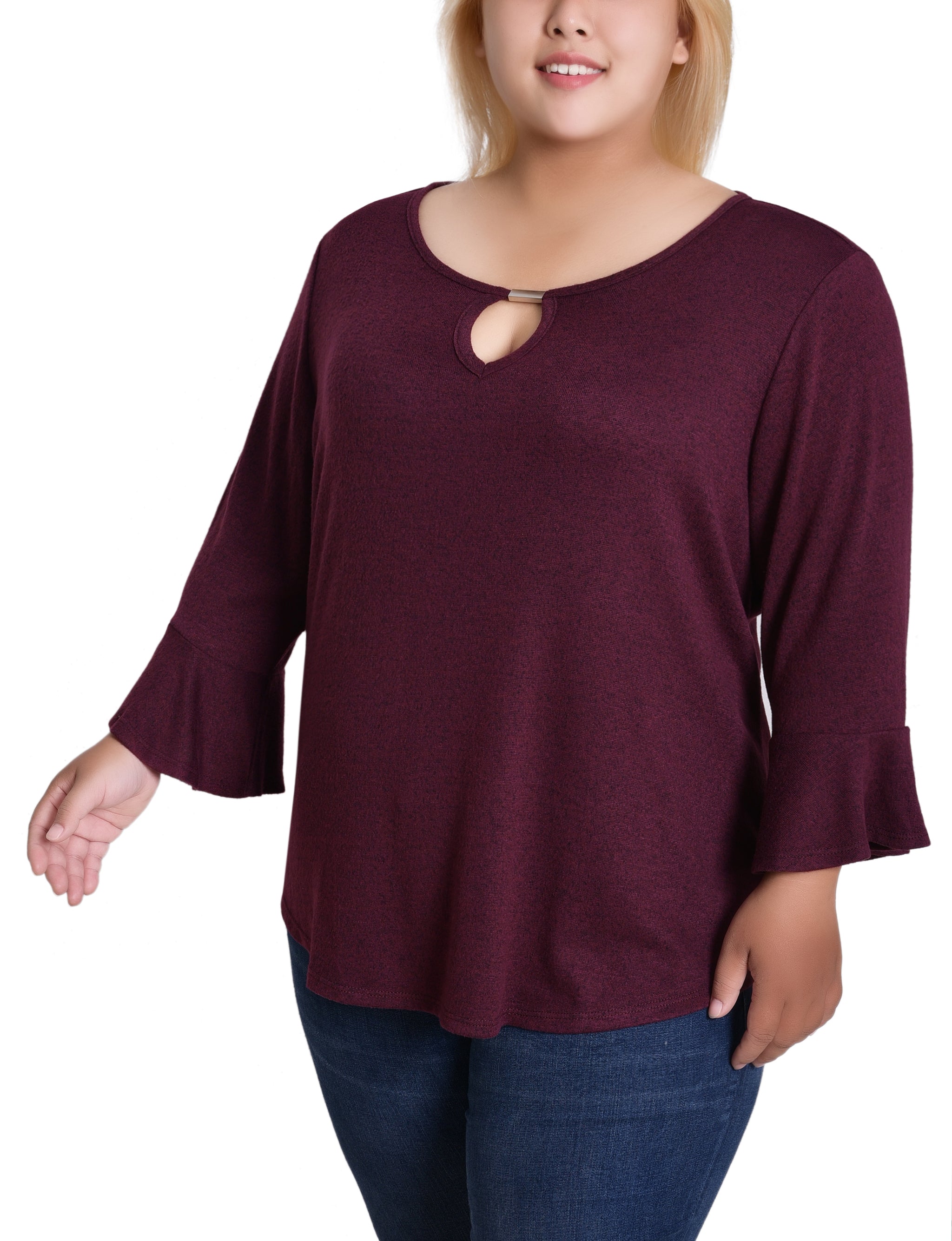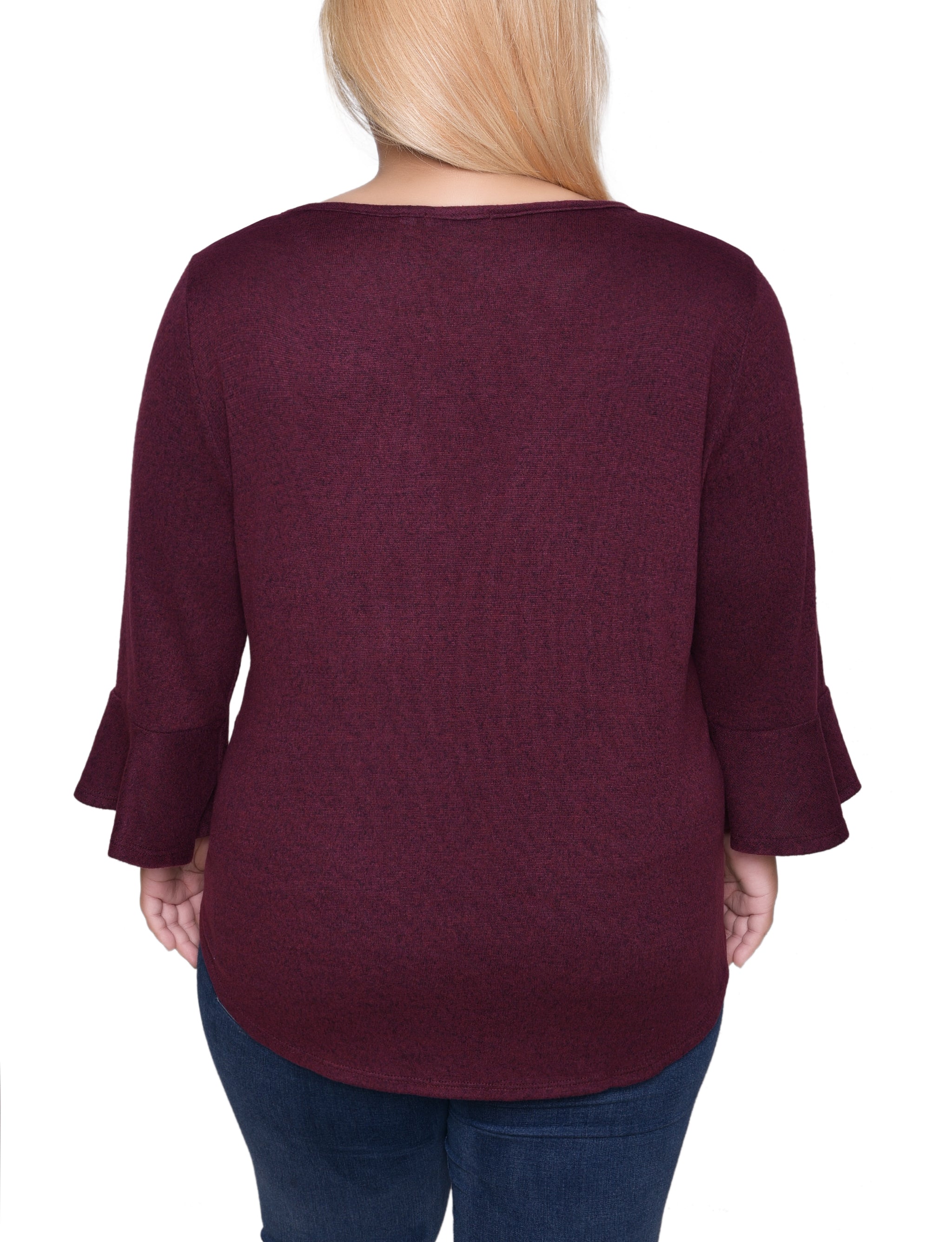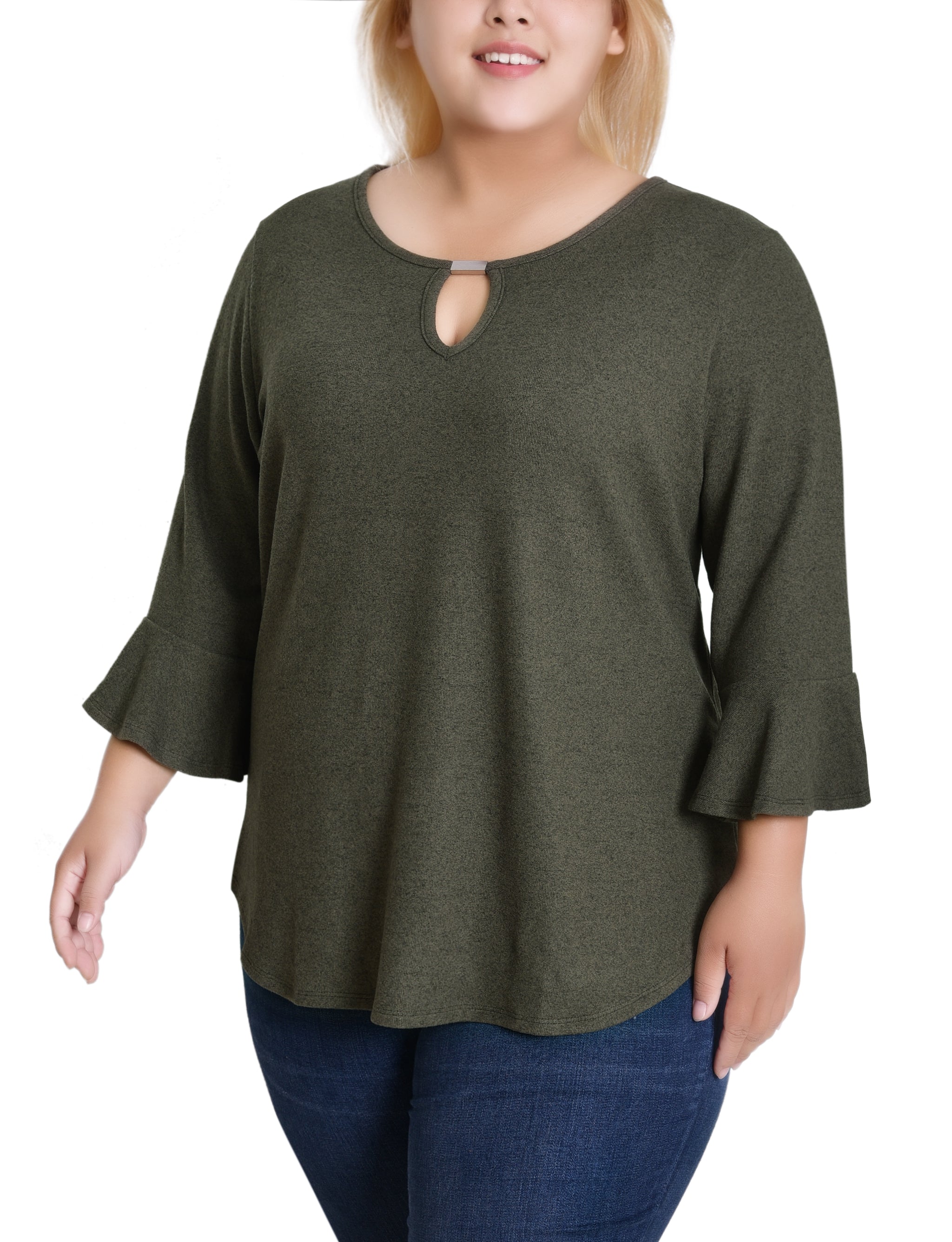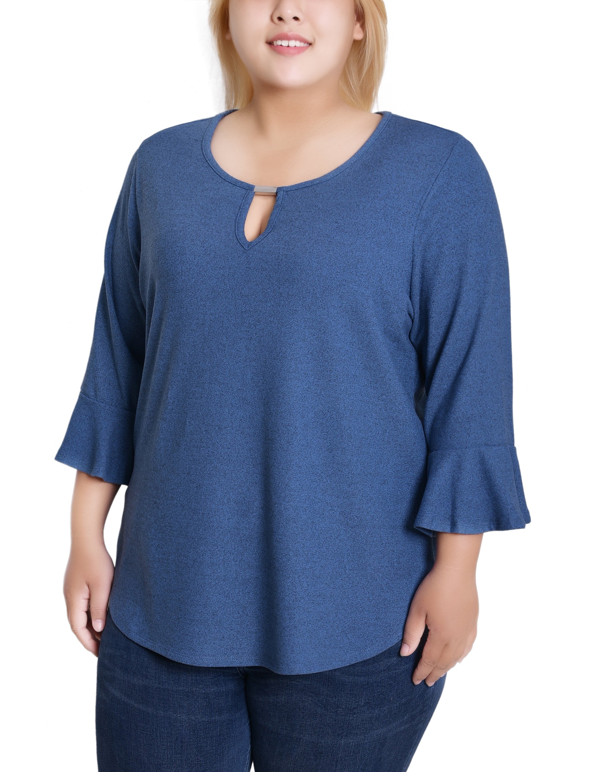 Plus Size 3/4 Bell Sleeve Top With Hardware