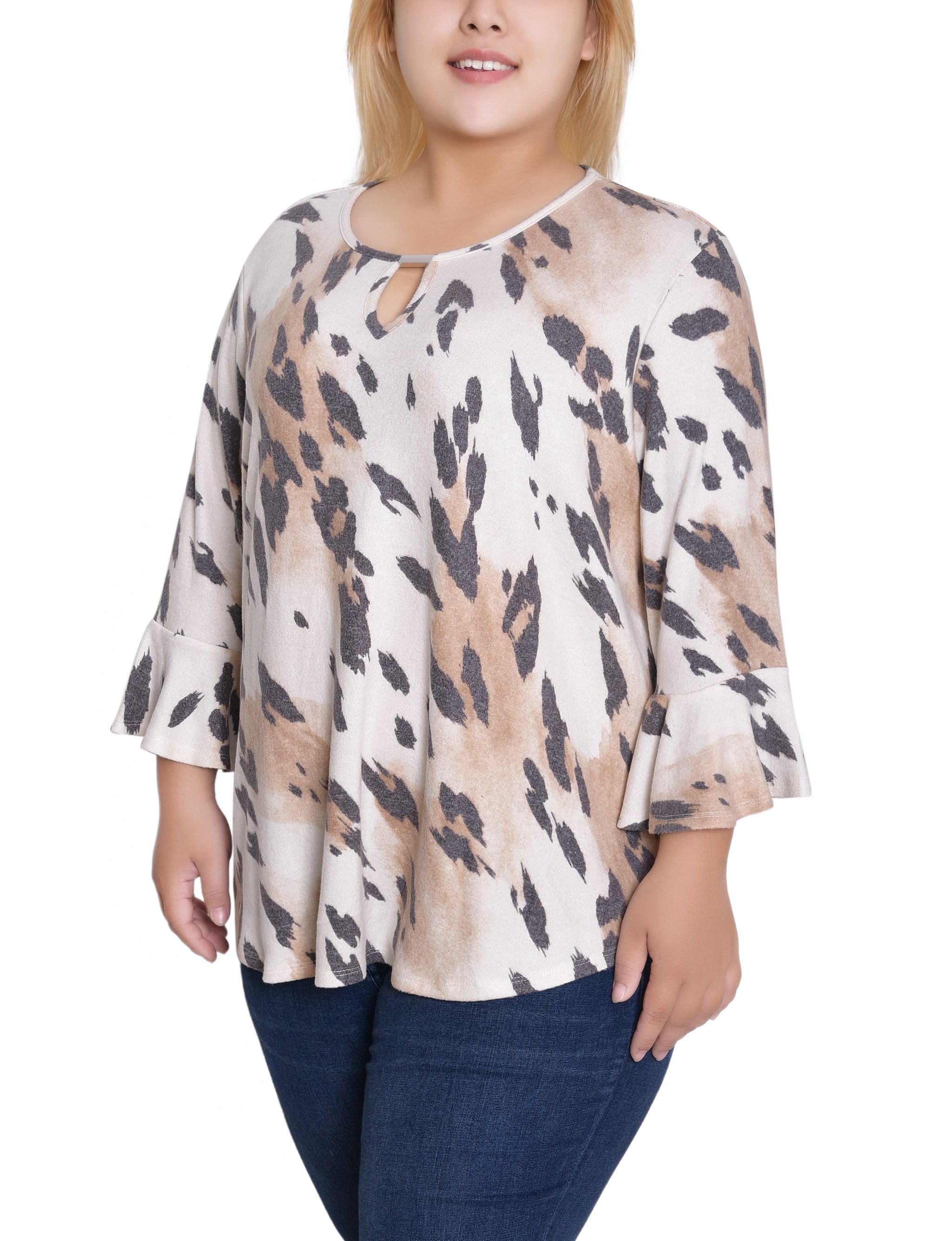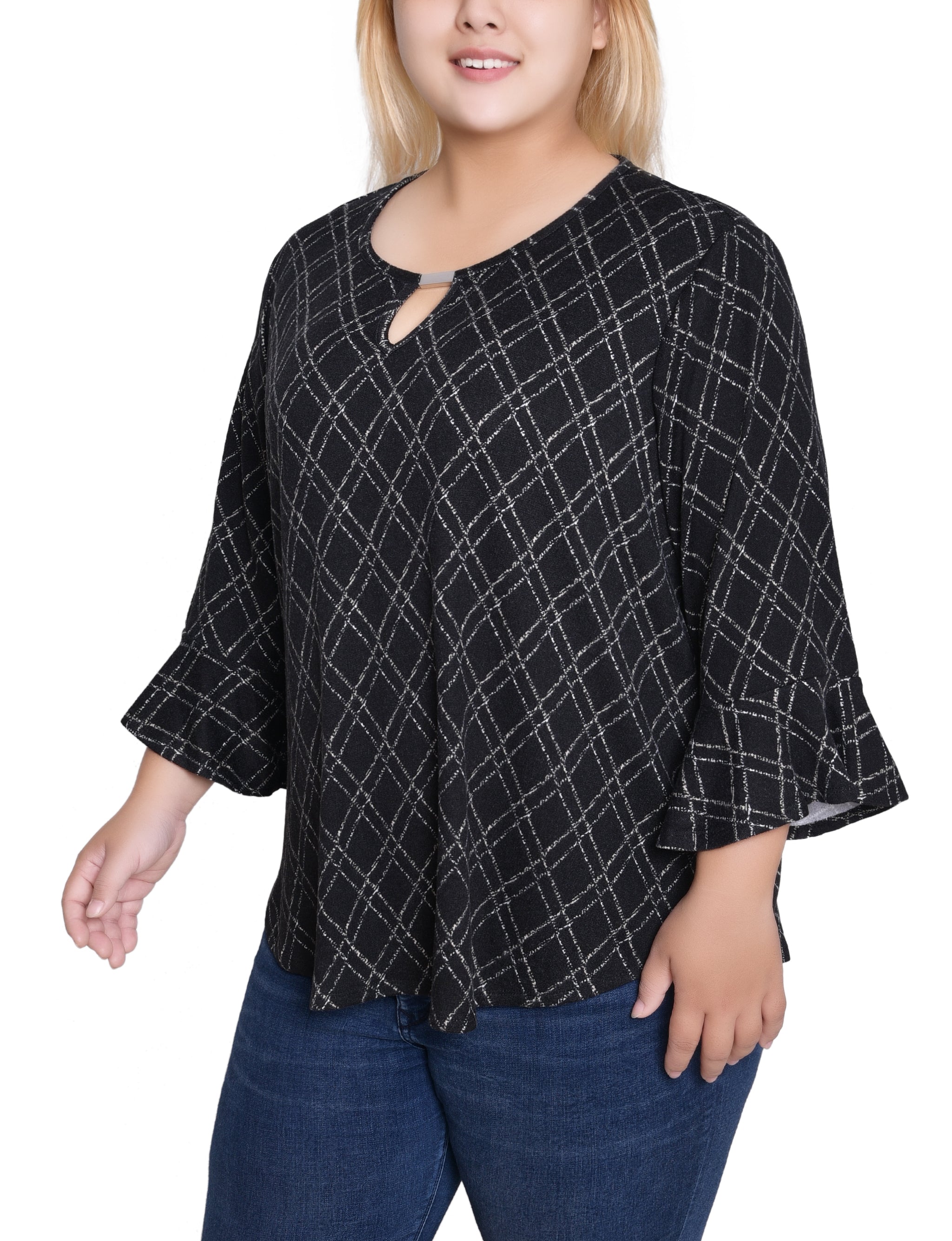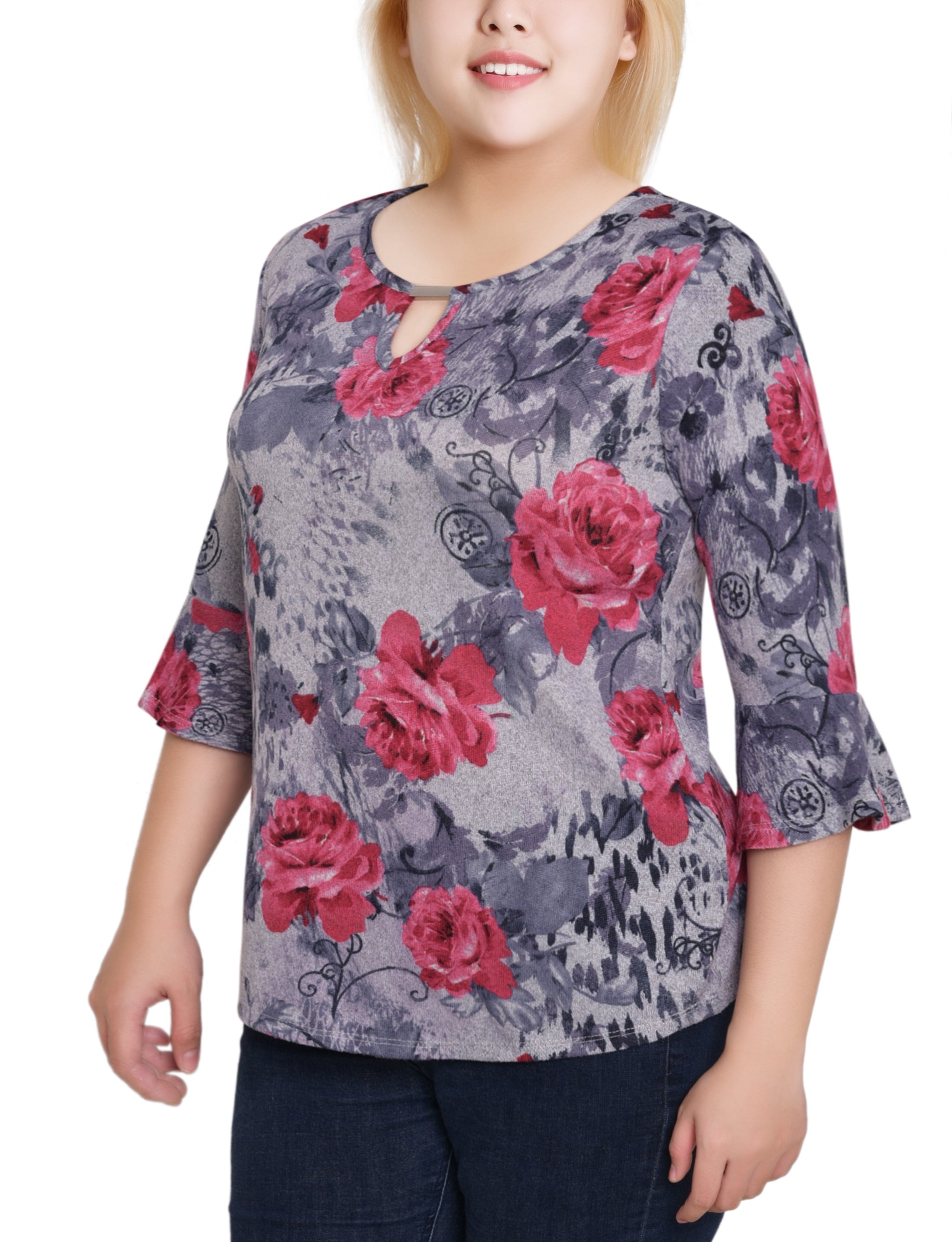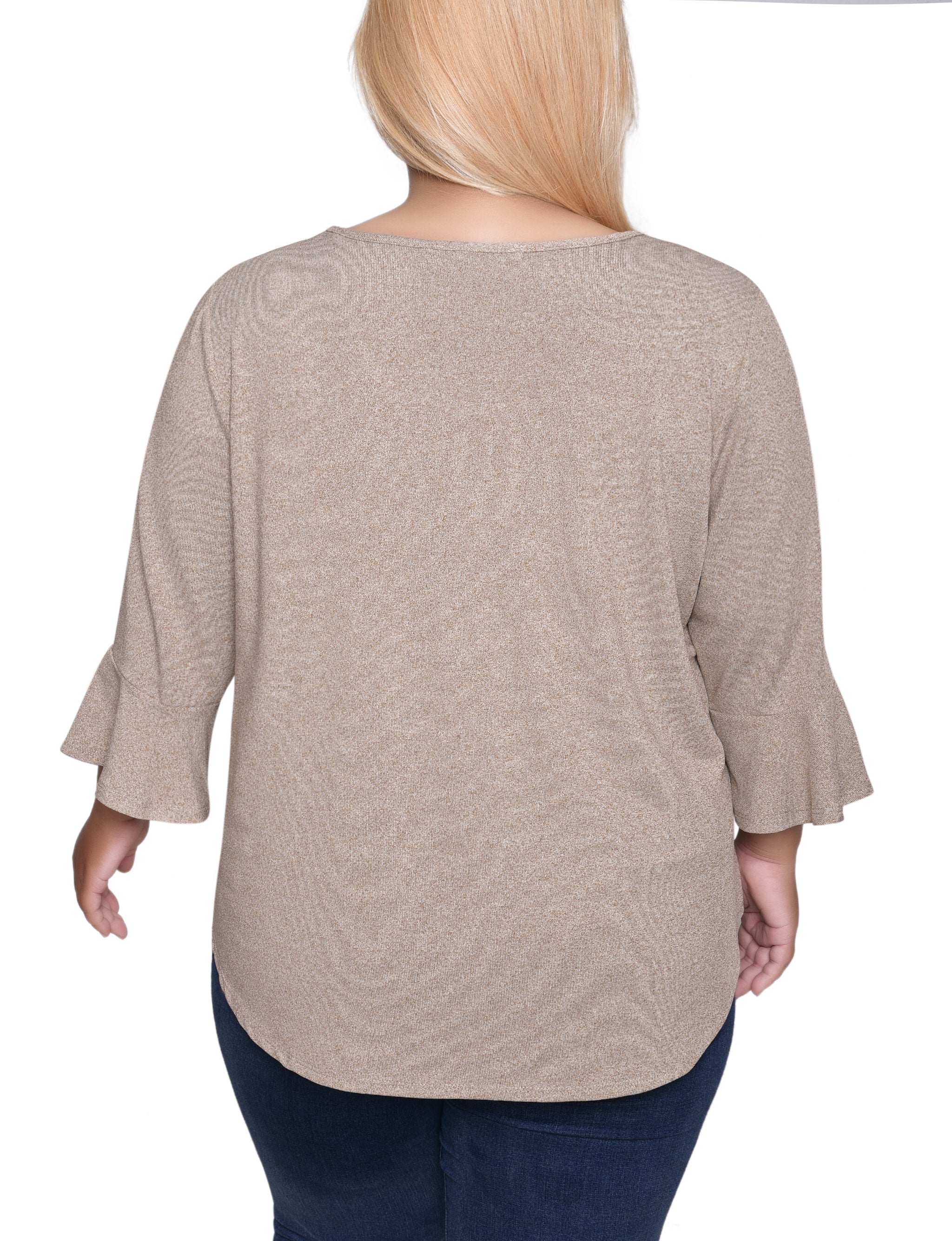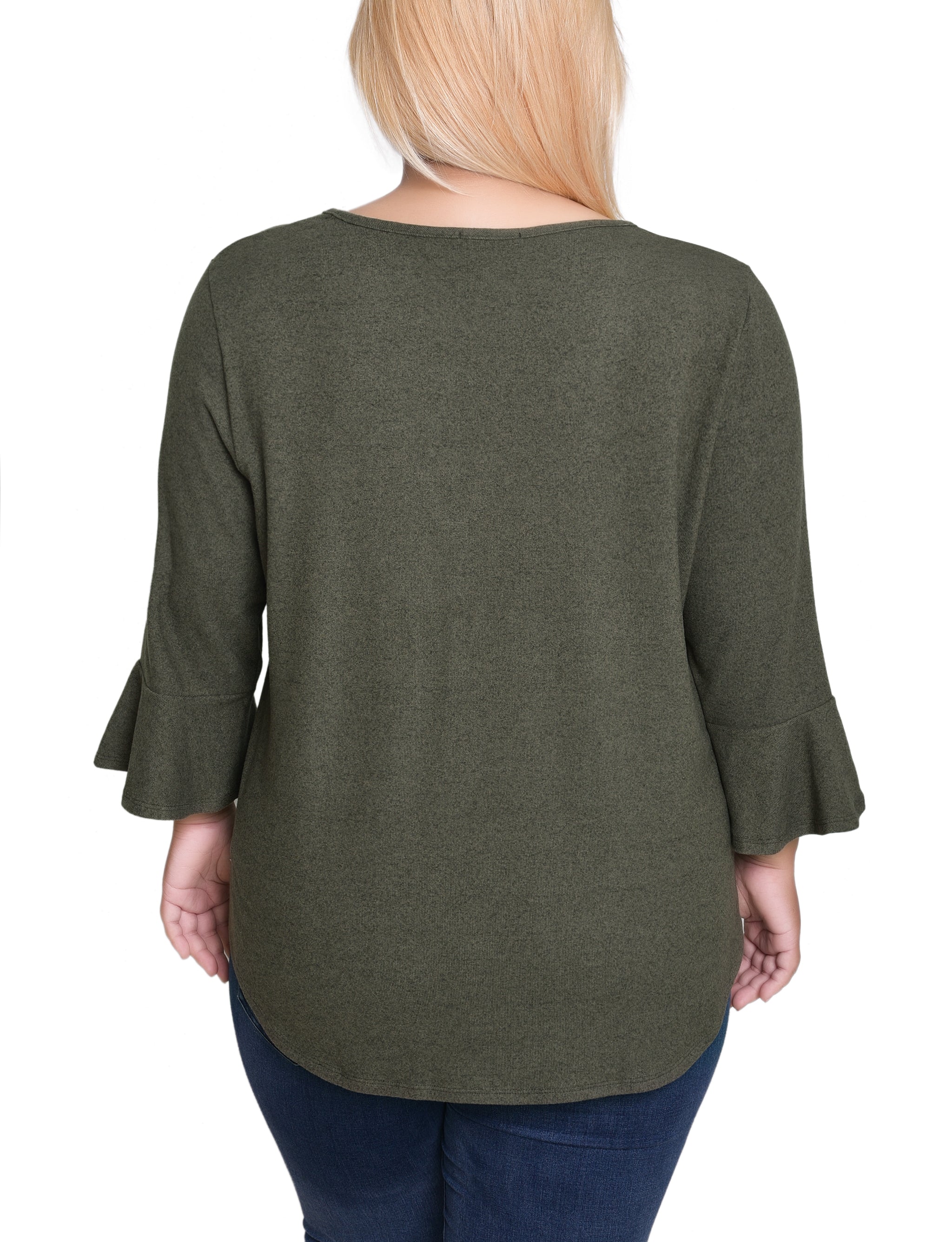 Plus Size 3/4 Bell Sleeve Top With Hardware