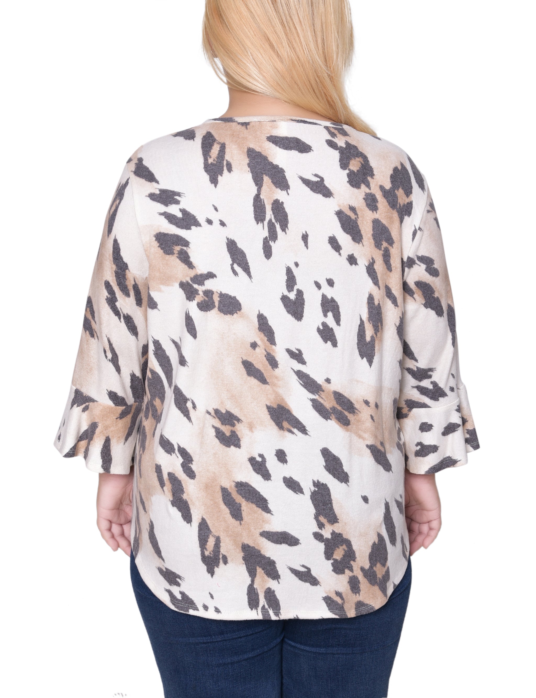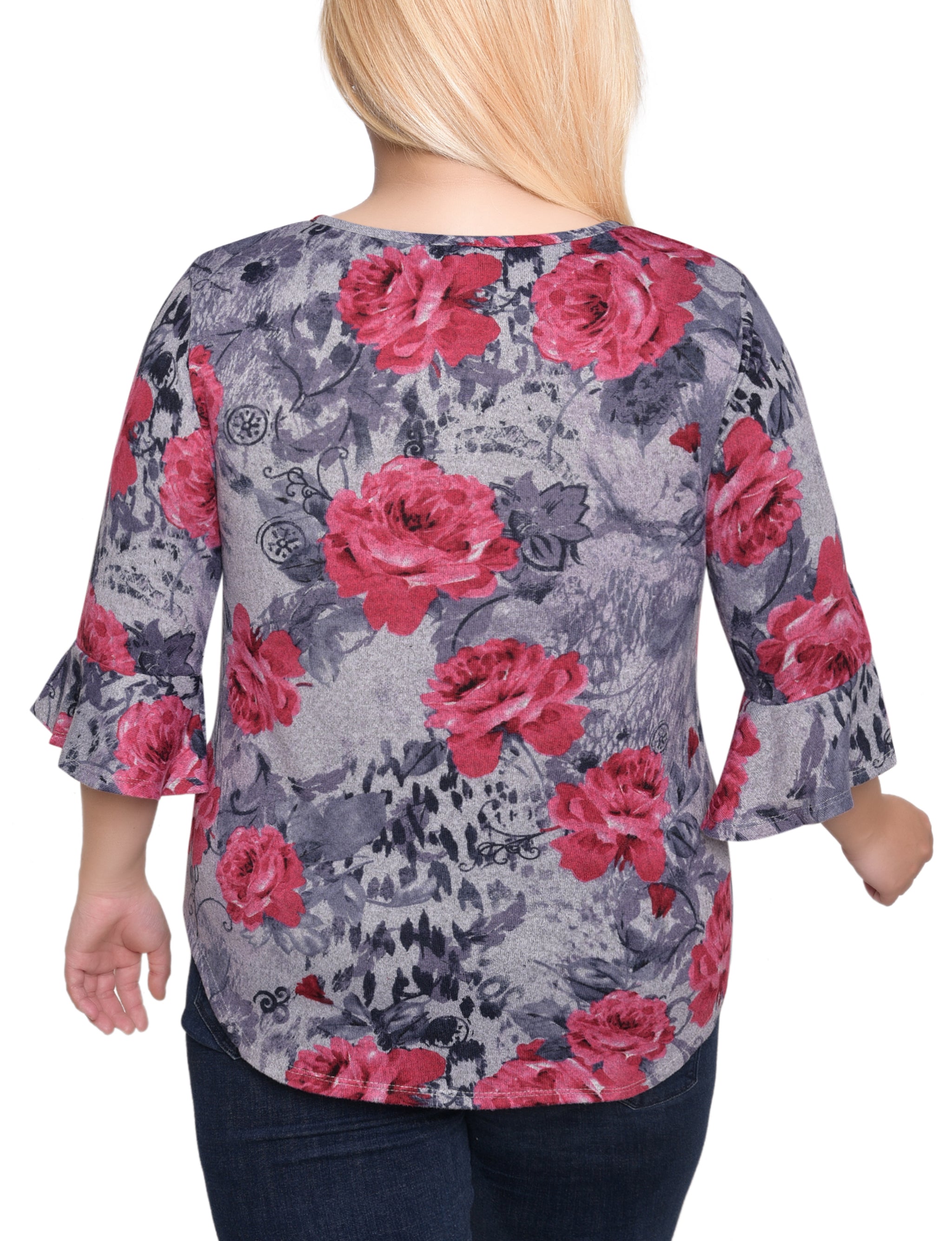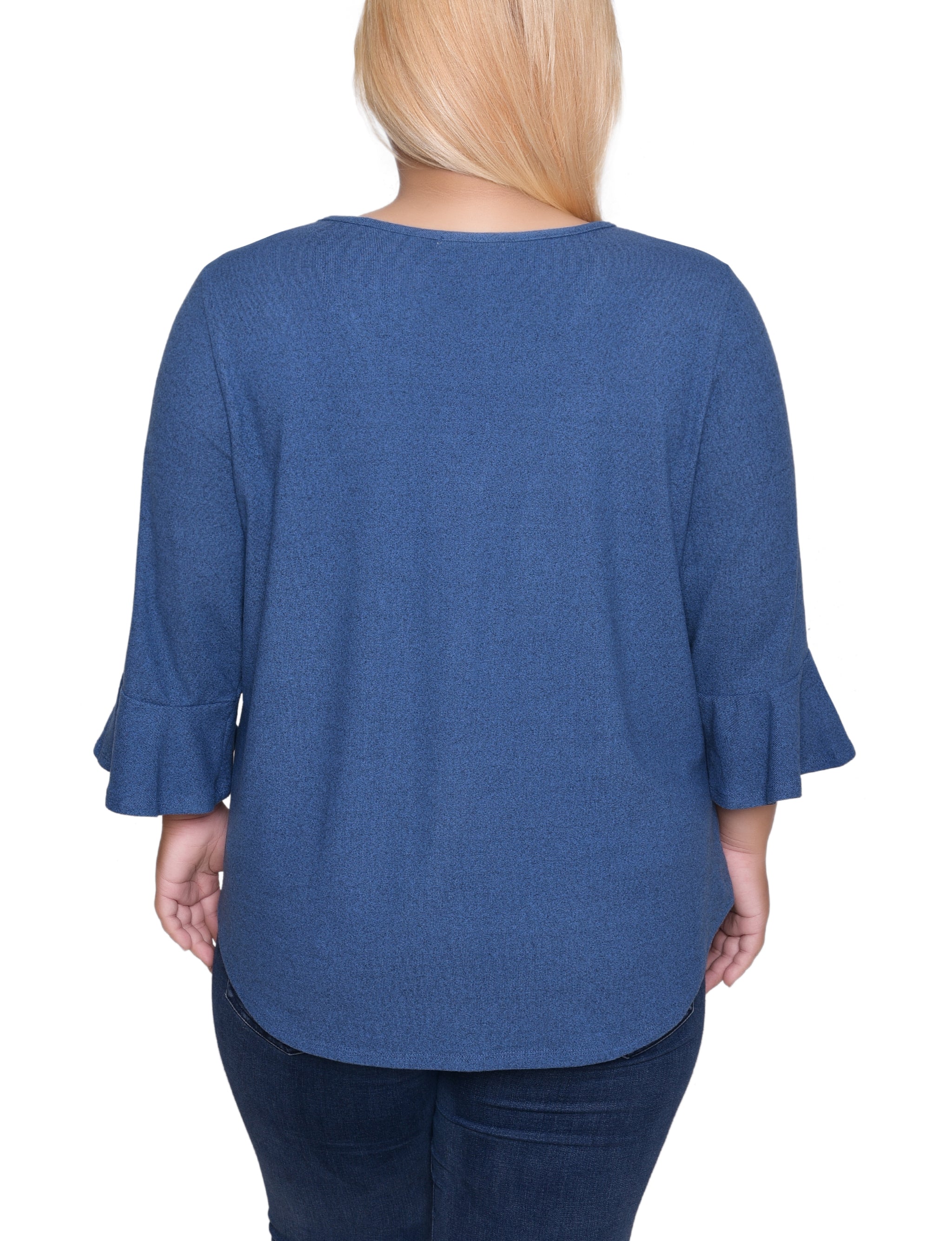 •Plus Size 3/4 Bell Sleeve Top With Hardware