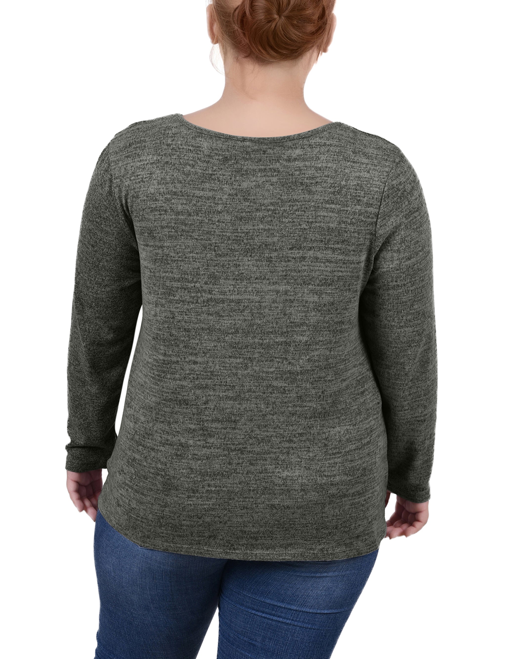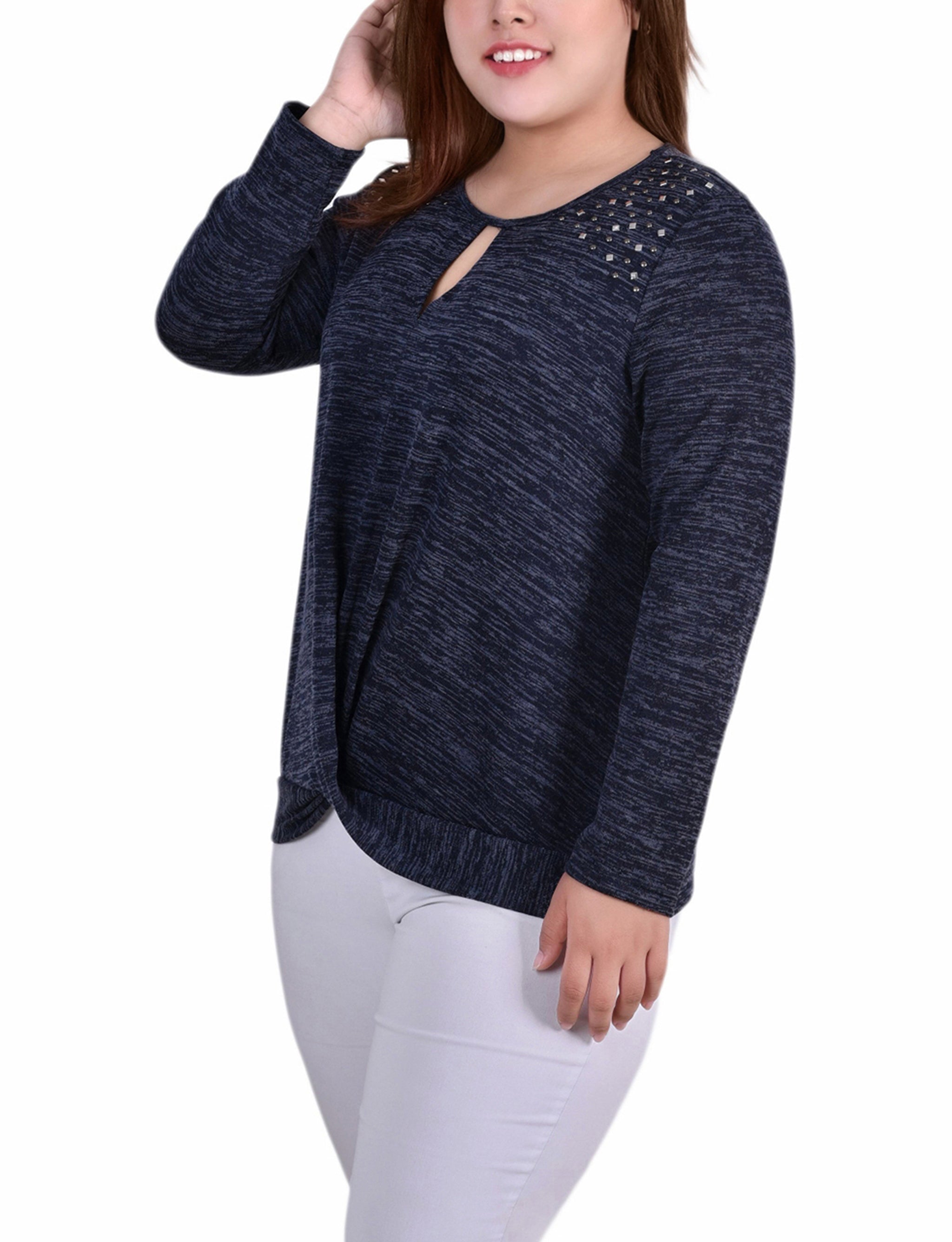 Plus Size Long Sleeve Knit Keyhole Top With Studs