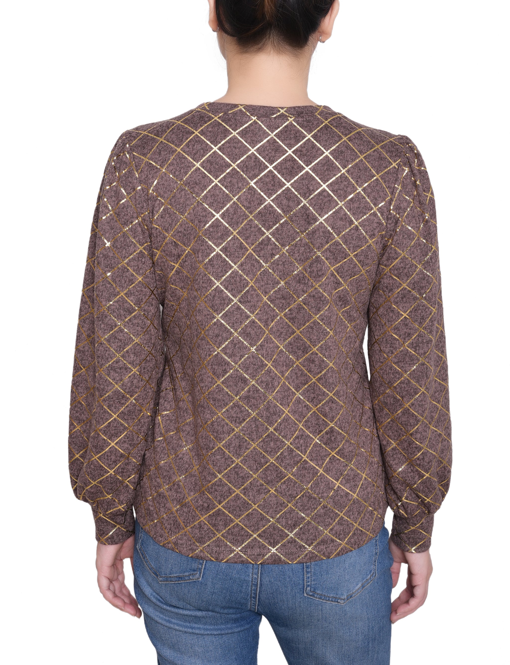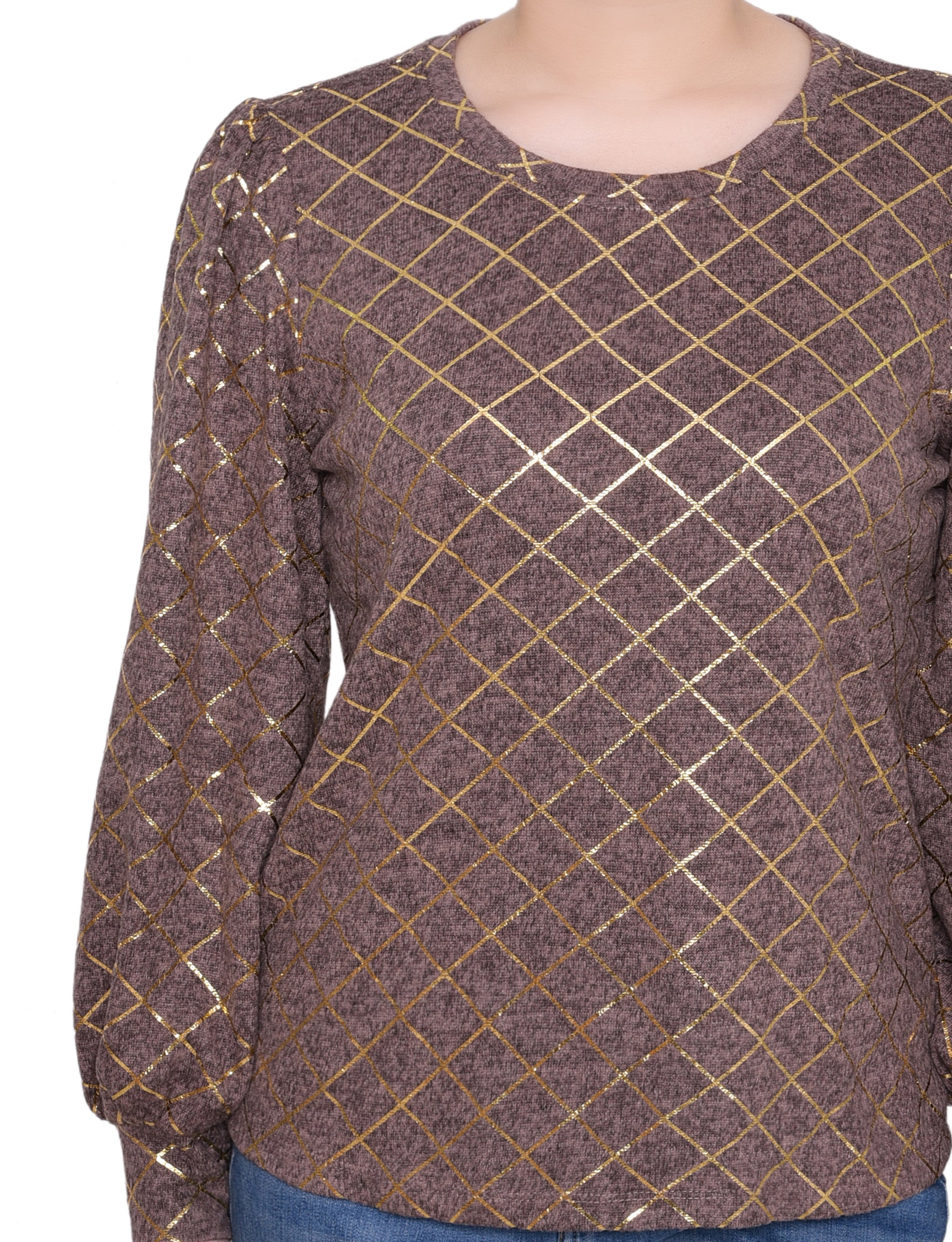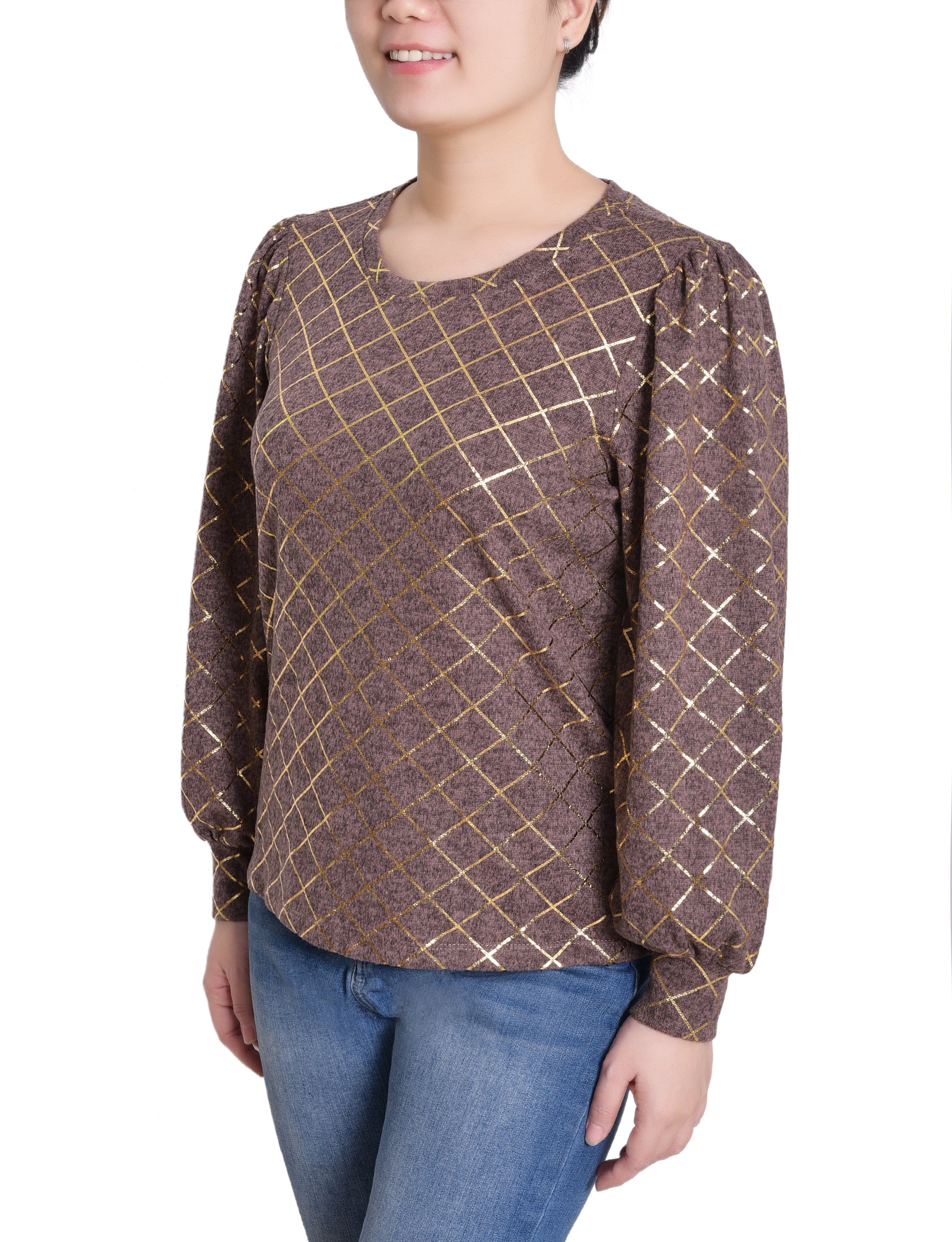 Styled with a classic crew neckline and voluminous long sleeves, this NY Collection top features a softly structured, feminine silhouette. The tailored body offers a flattering, polished finish that's easy to dress up or down.