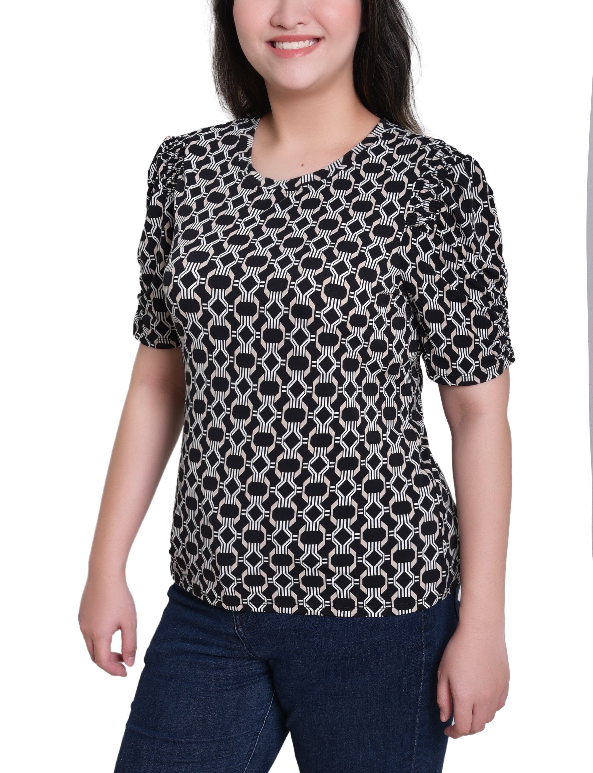 Elevate your everyday style with this NY Collection knit top featuring a classic round neckline. The short puff sleeves add a touch of charm to its polished, versatile design.