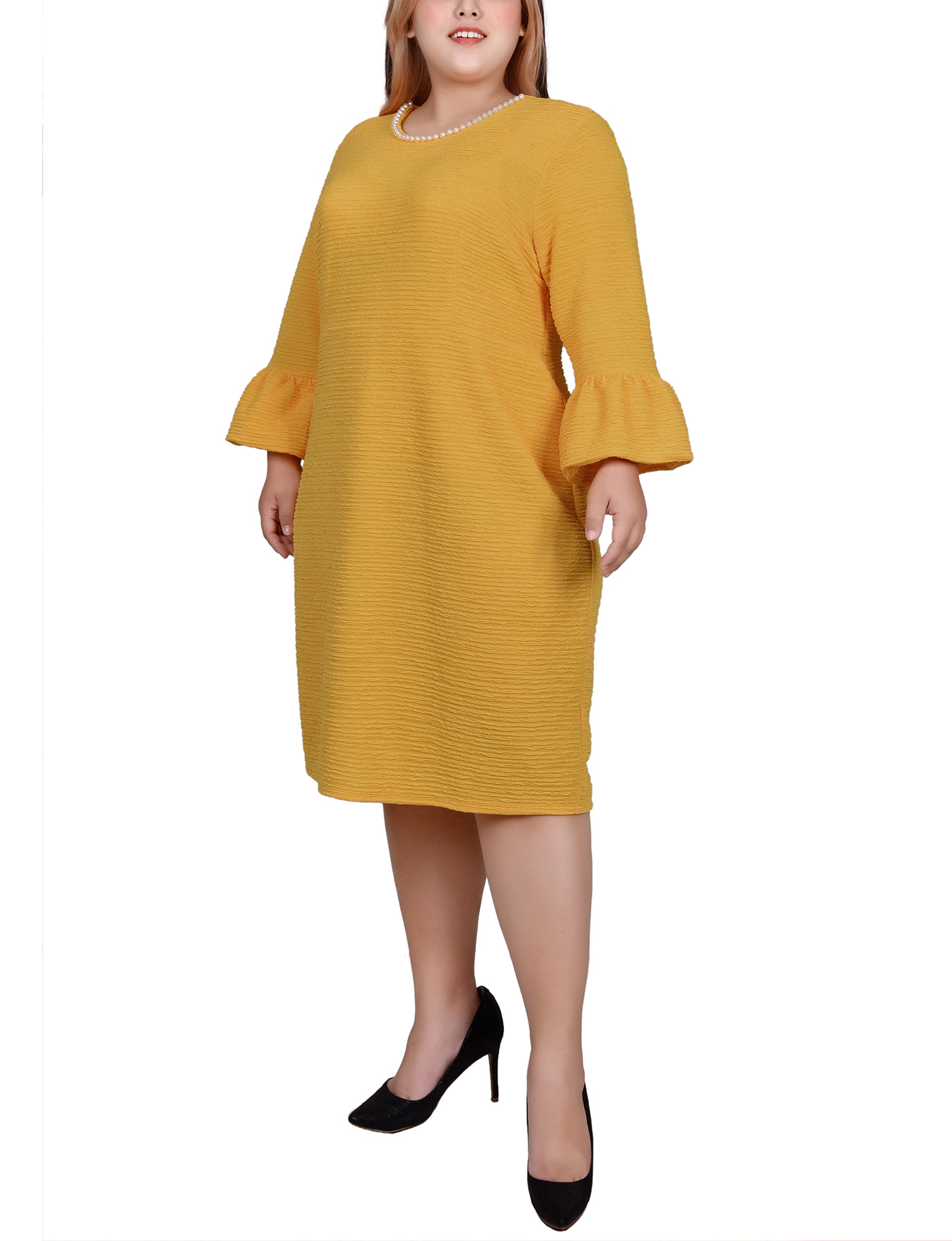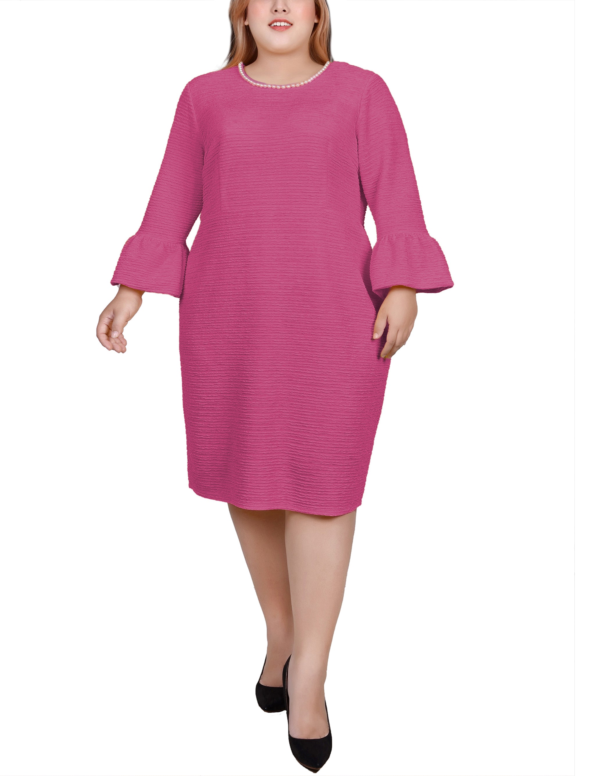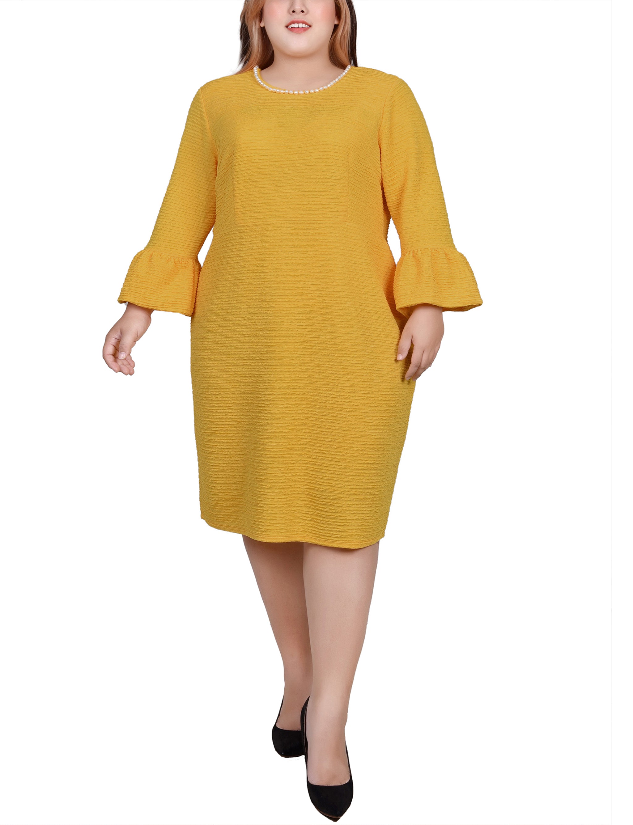 This NY Collection dress is crafted from a stretch novelty knit fabric. With a flattering waist seam, bust darts, and center back zipper, it's designed to flatter any figure. Pearl beads at the neckline add a touch of elegance.