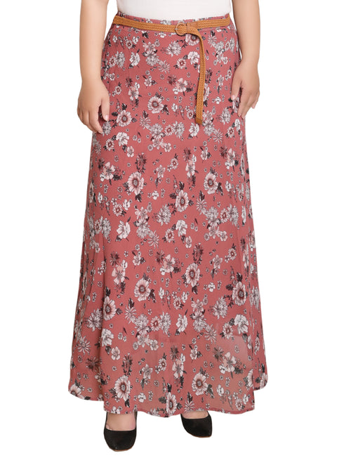 Petite Maxi A-Line Skirt With Front Faux Belt With Ring Detail