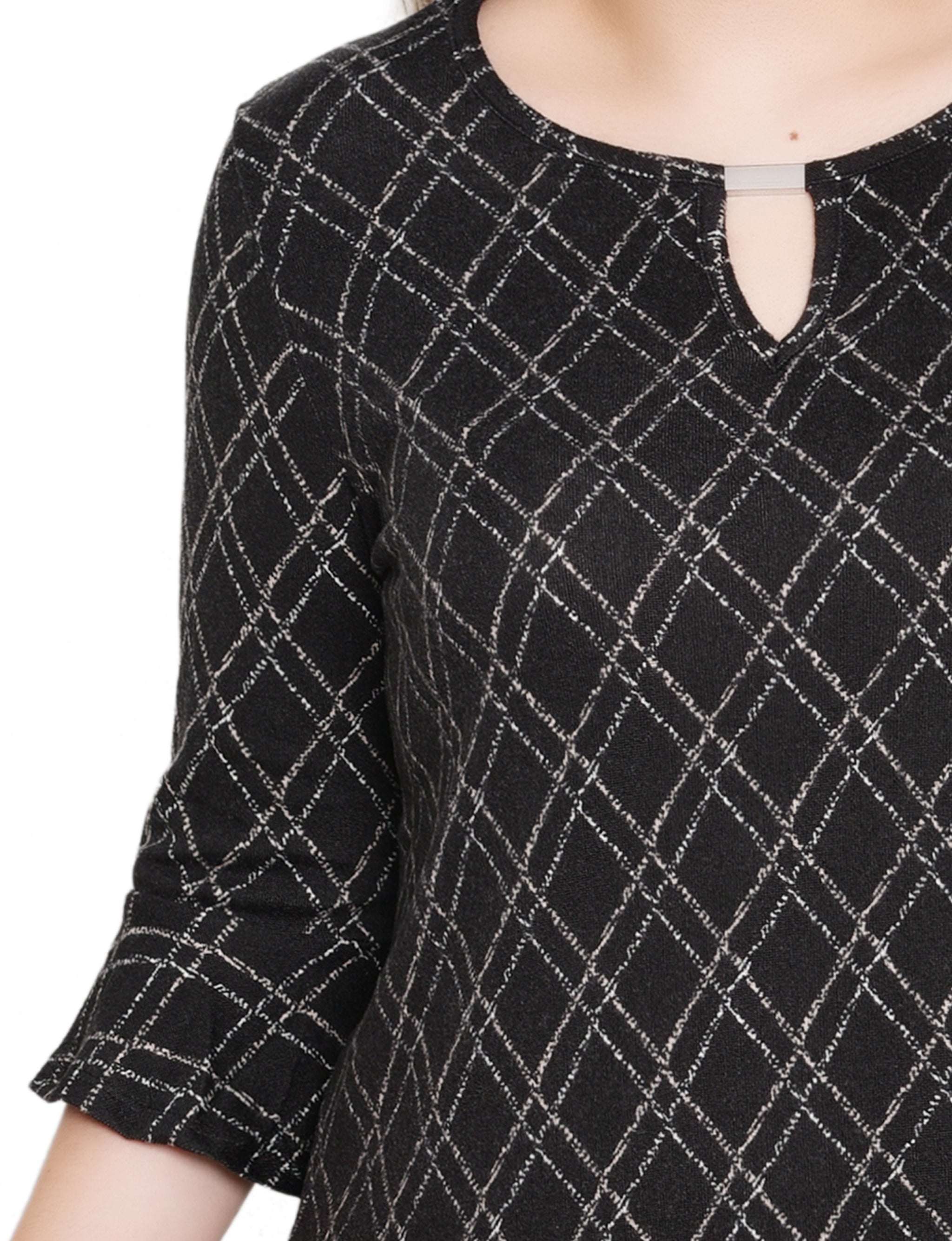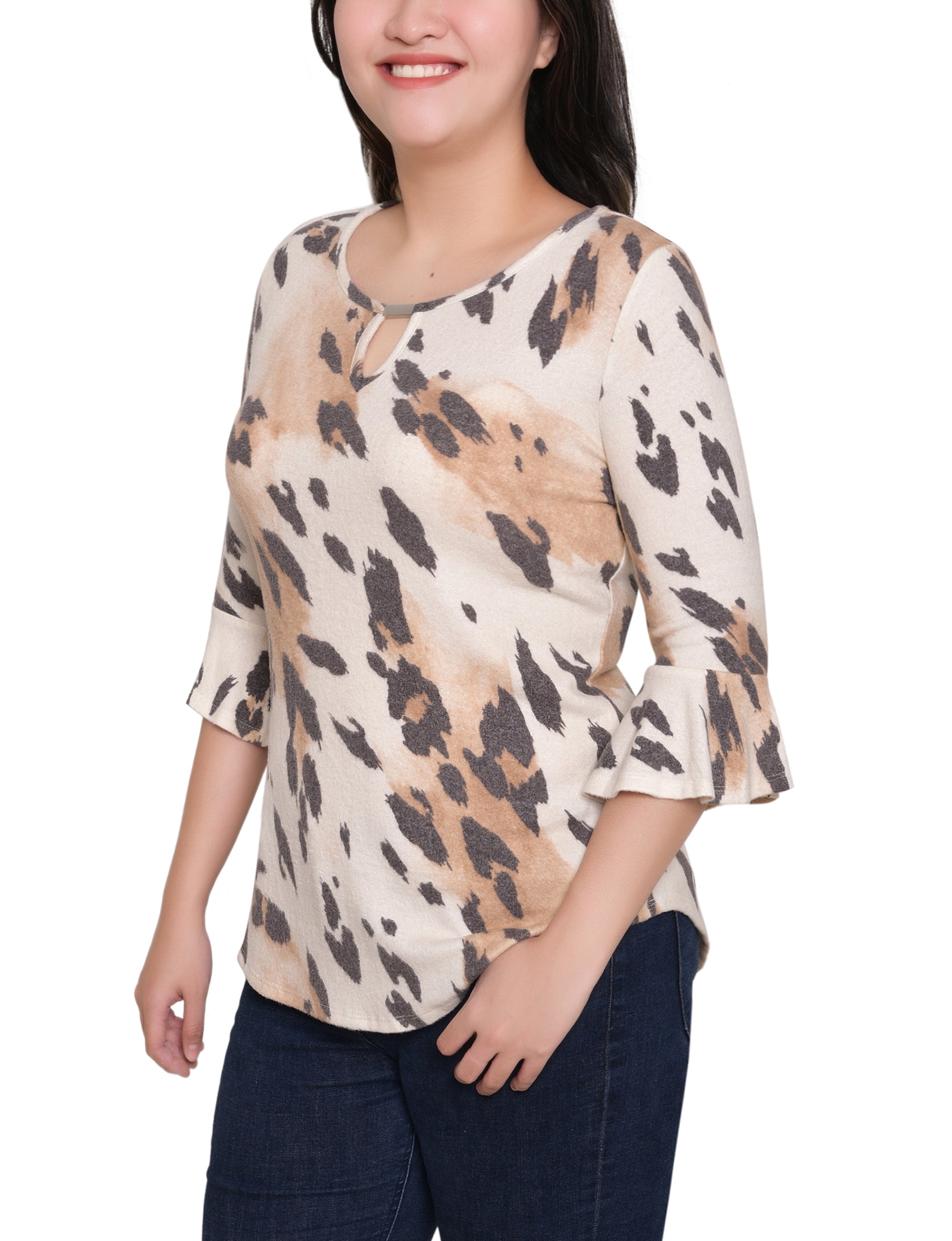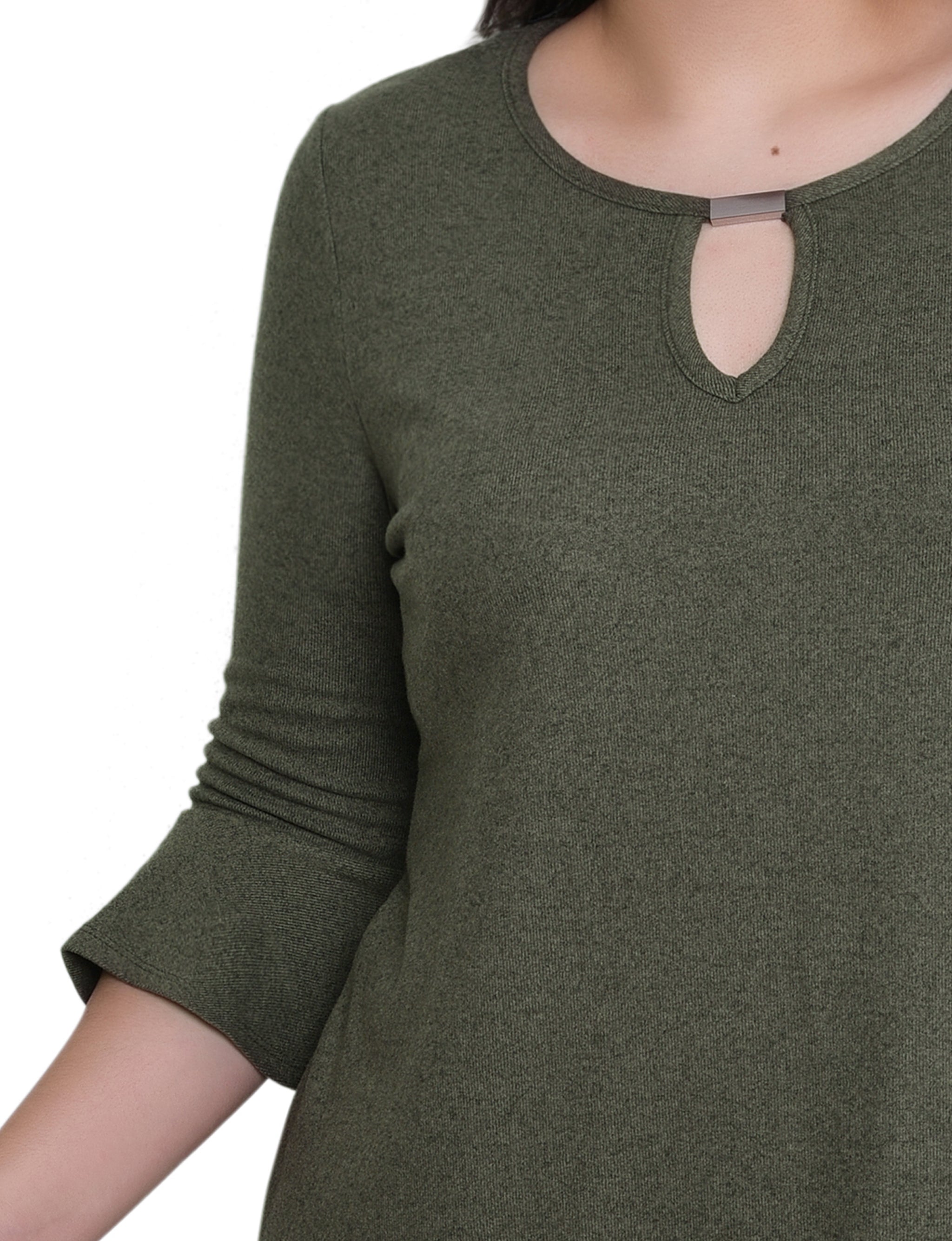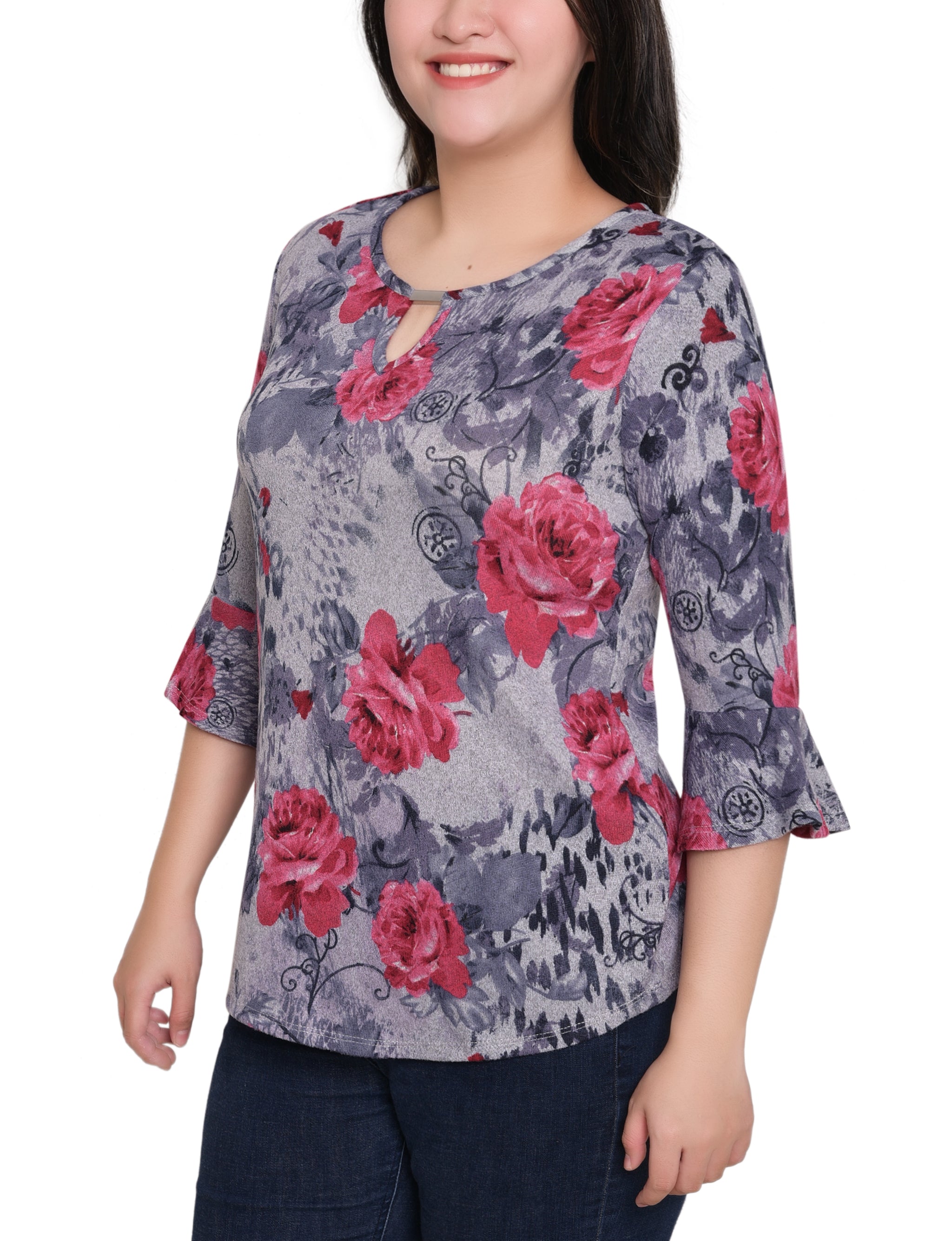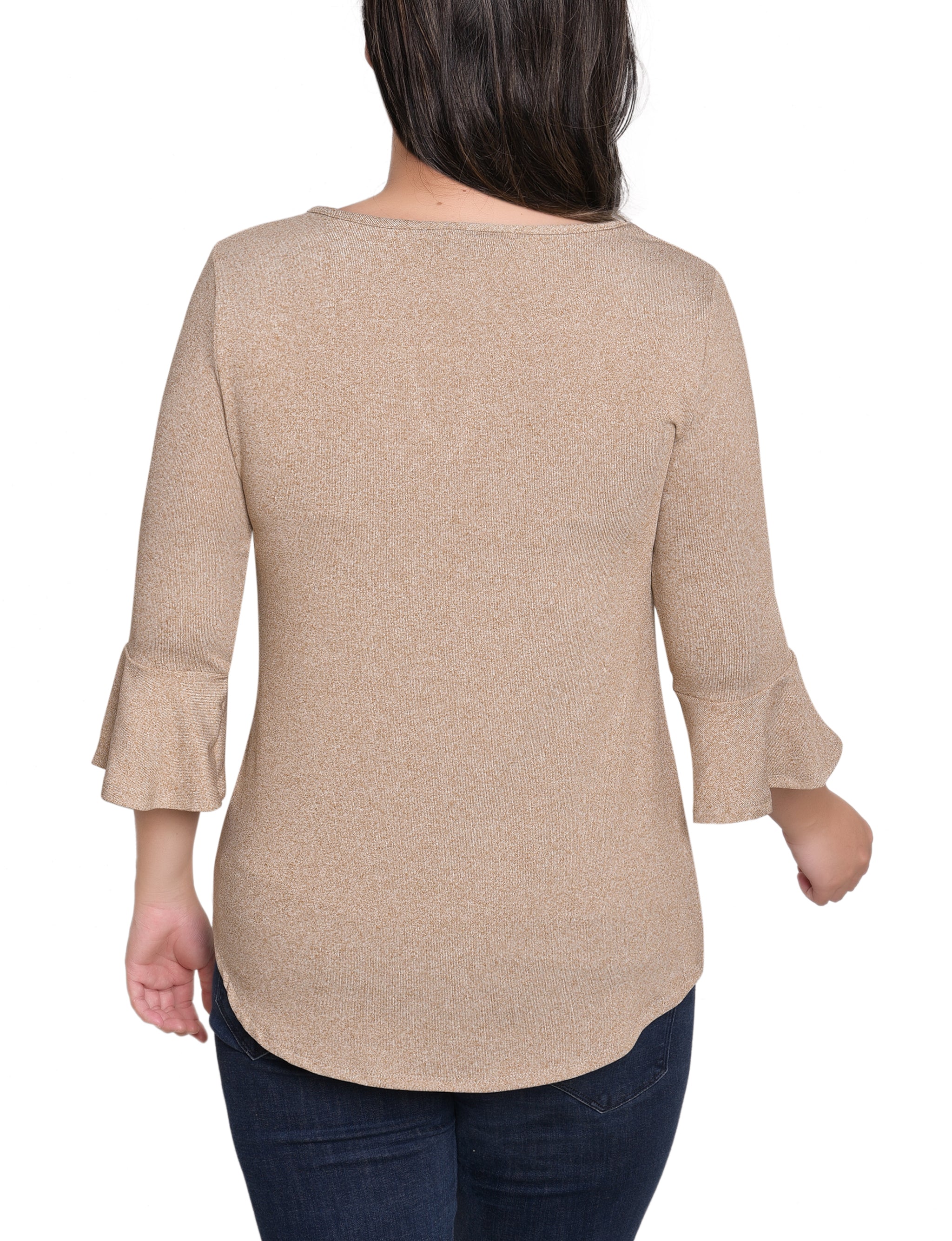 Effortless and easy to wear, this NY Collection knit top features a relaxed silhouette with a keyhole neckline and flounced 3/4 sleeves for a touch of feminine flair. Perfect for casual days or dressed-up comfort.