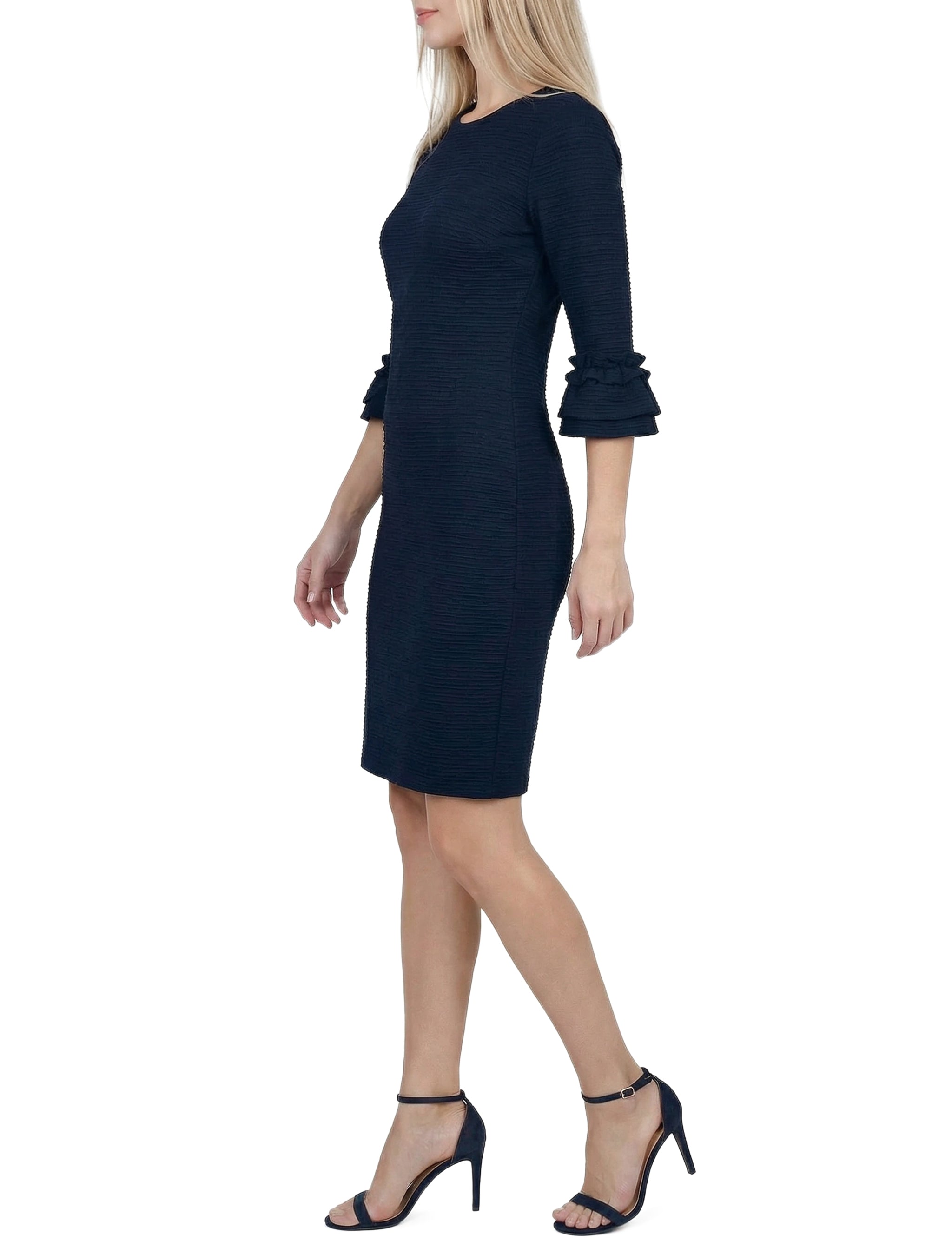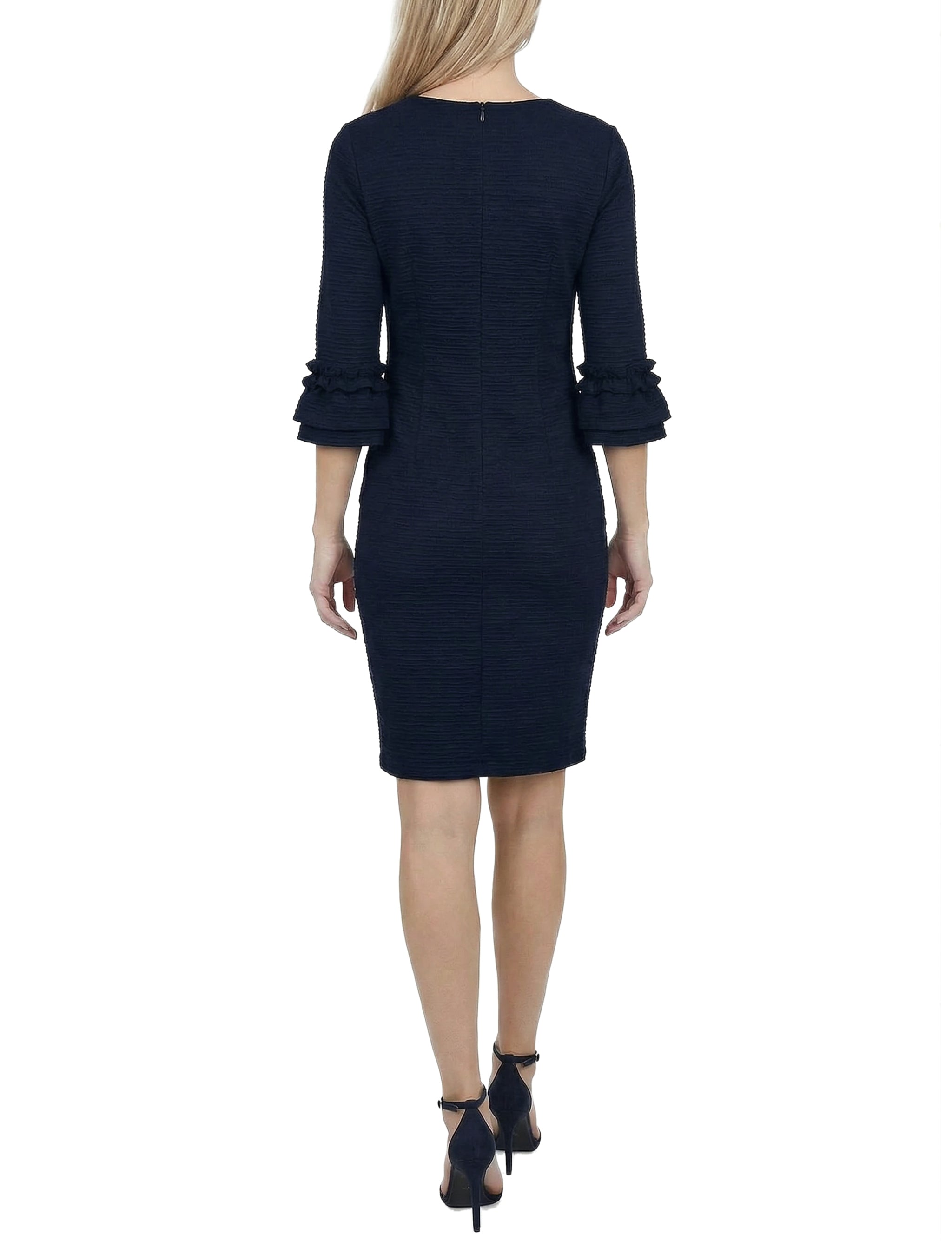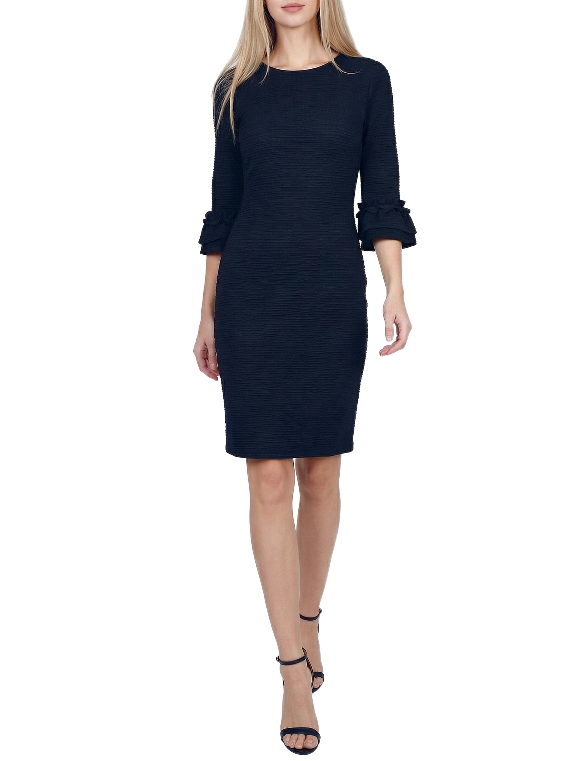 Create a real wow this season in this textured knit ruffle sleeve dress from NY Collection.